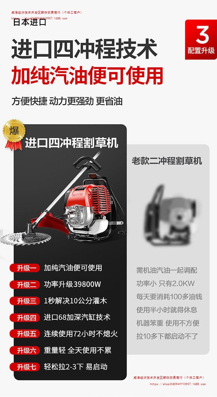 • 측면 장착형 [잔디 깎기]_일본 수입 [고출력 항공 버전] 4행정 순수 가솔린