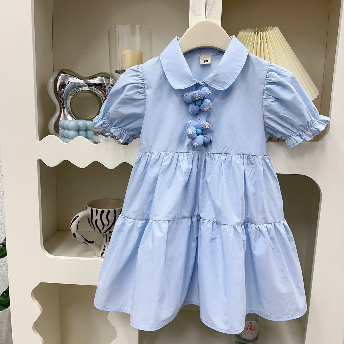 여자 한국 스타일 원피스 여름 새 소녀 입체 꽃 짧은 소매 셔츠 원피스 원피스스토어 가기