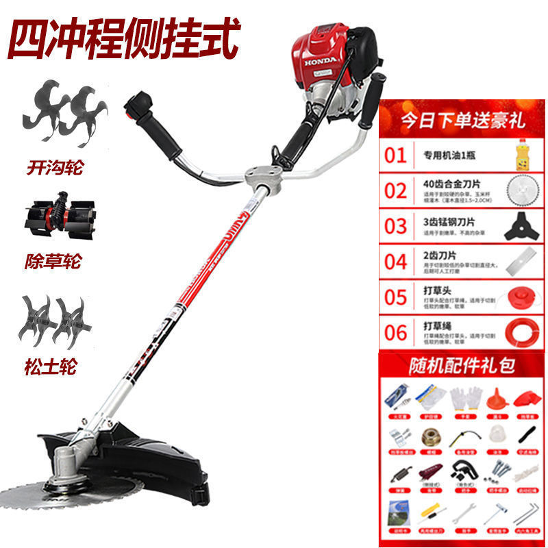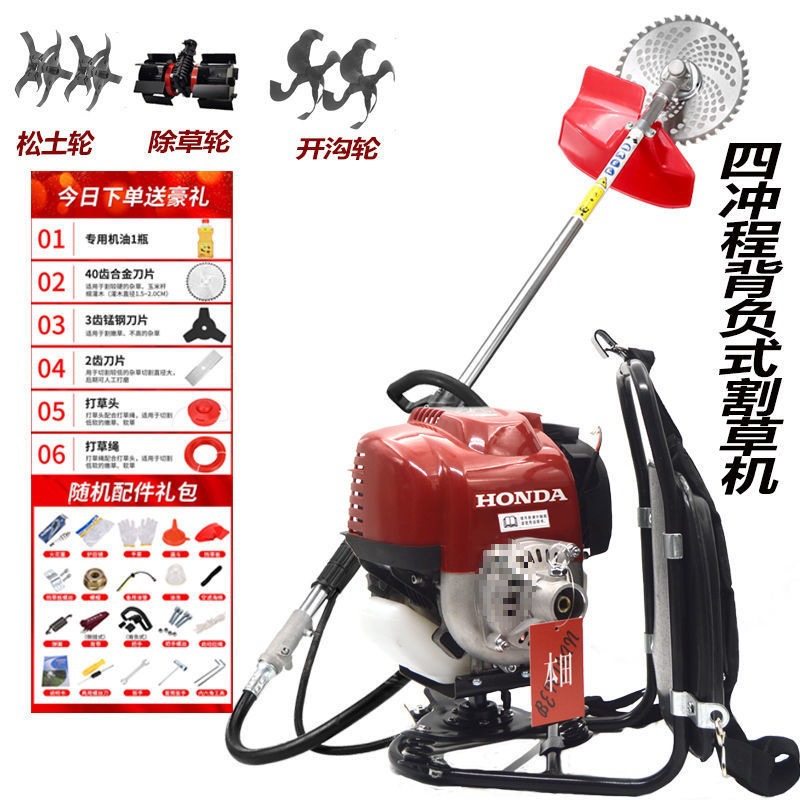 수입 된 혼다 잔디 깎는 기계 4 행정 배낭 형 작은 다기능 농업 가솔린 황무지를 치우고 느슨한 토양을 수확하기위한 제초