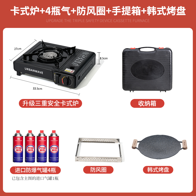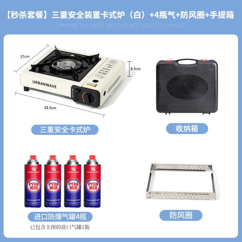 • 야외 주전자 + 삼중 장치 카세트 스토브 + 가스 4병 + 방풍 링 + 여행 가방✓