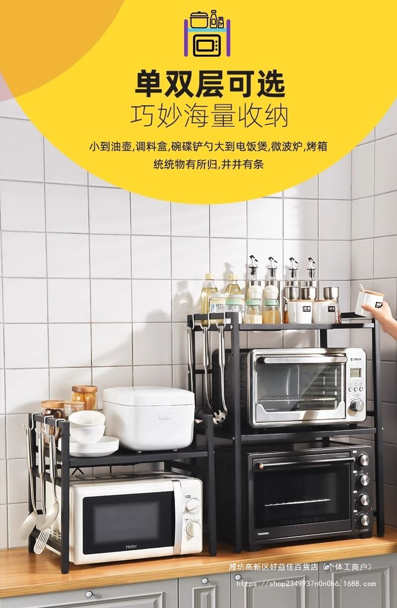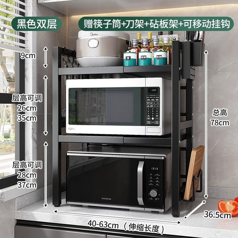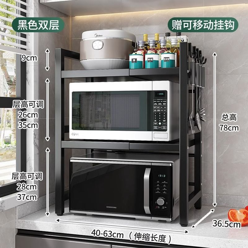 전자 레인지 주방 보관 랙 망원경 밥솥 가정용 랙 카운터 탑 브래킷 오븐 다기능 더블 레이어 보관스토어 가기