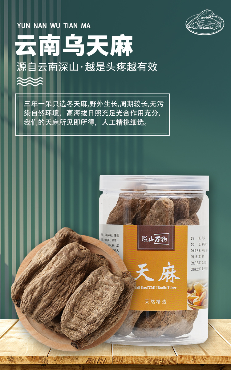 Gastrodia elata Wild Special Yunnan Zhaotong Wu Gastrodia elata 중국 한약 슬라이스 파우더 말린 작은 Gastrodia elata Headache 공식 플래그십 스토어스토어 가기