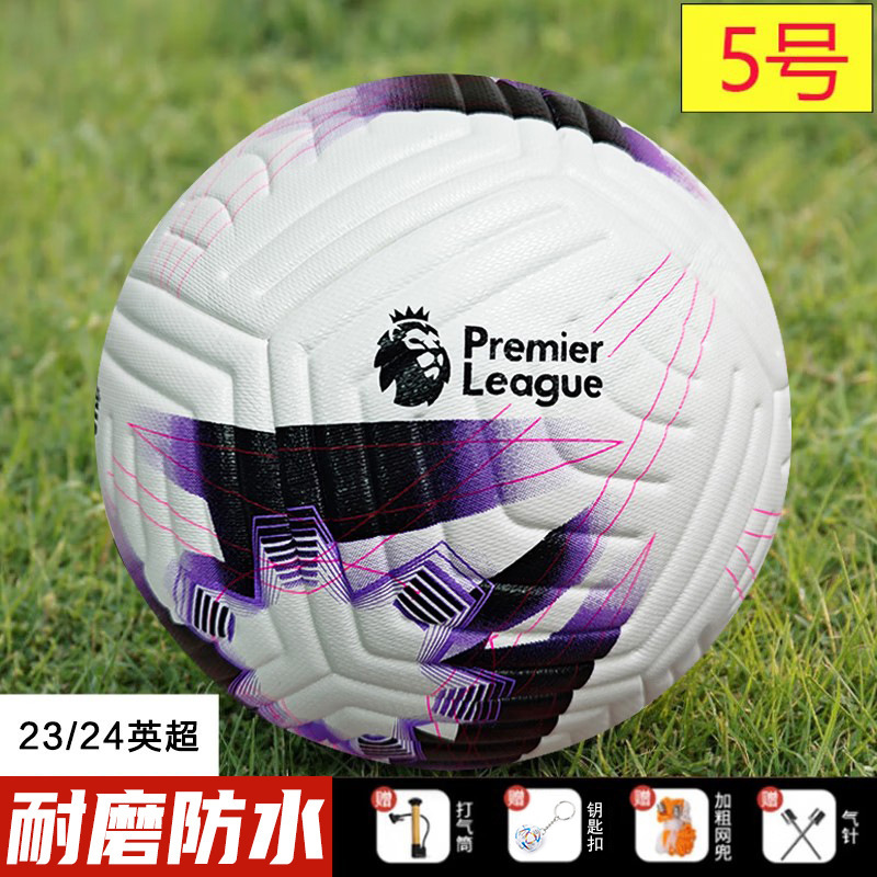 • 无标贴皮2324英超X白紫5号球
