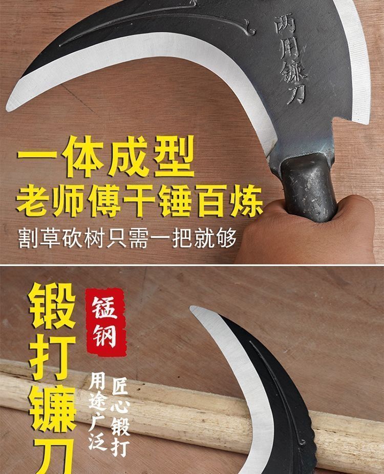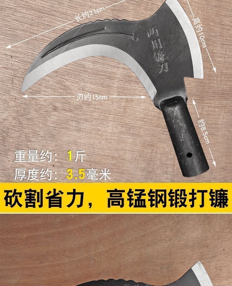두꺼운 이중 목적 망간강 낫, 잔디 깎는 칼, 농업용 고망간강, 야외 장작 및 나무 벌기 칼, 긴 손잡이