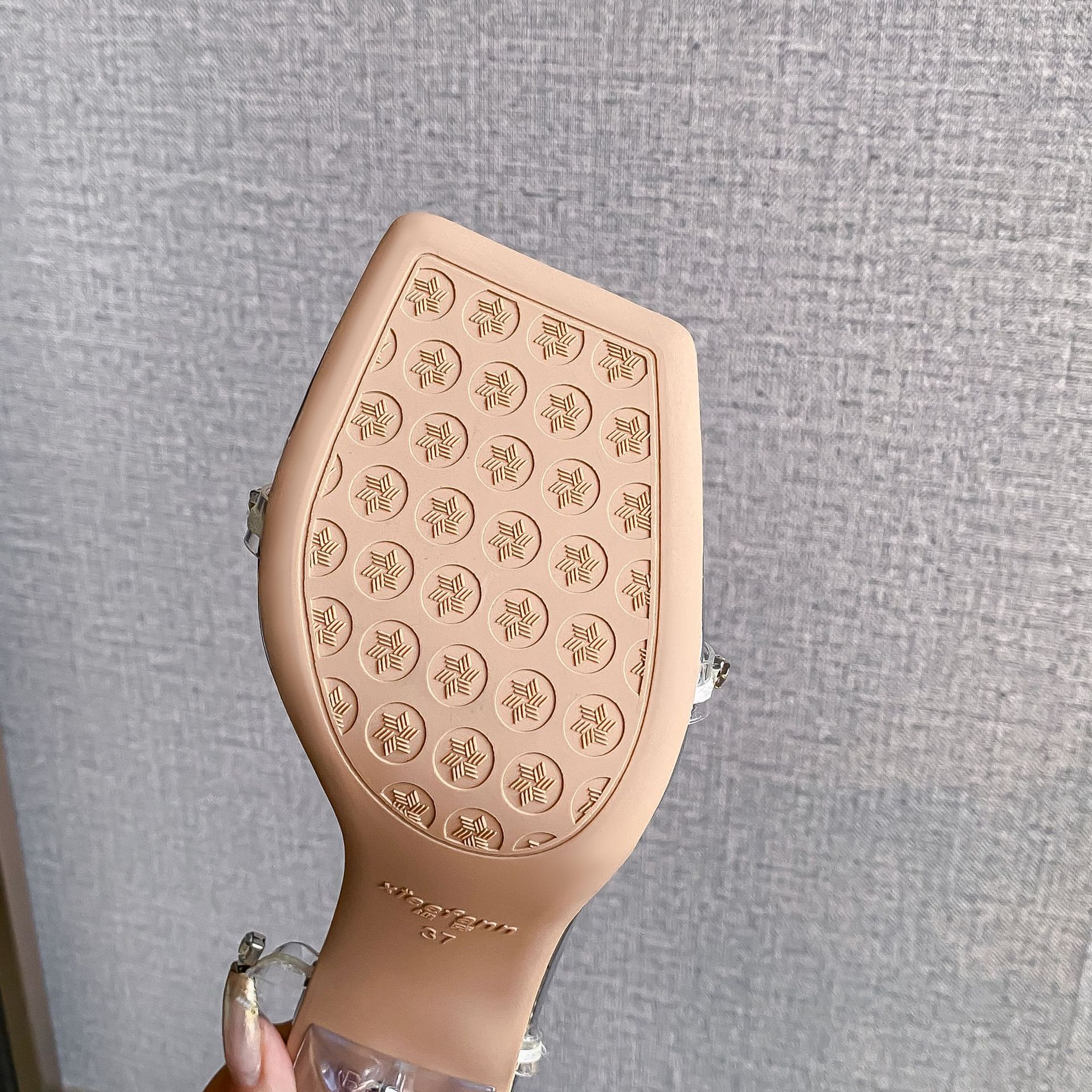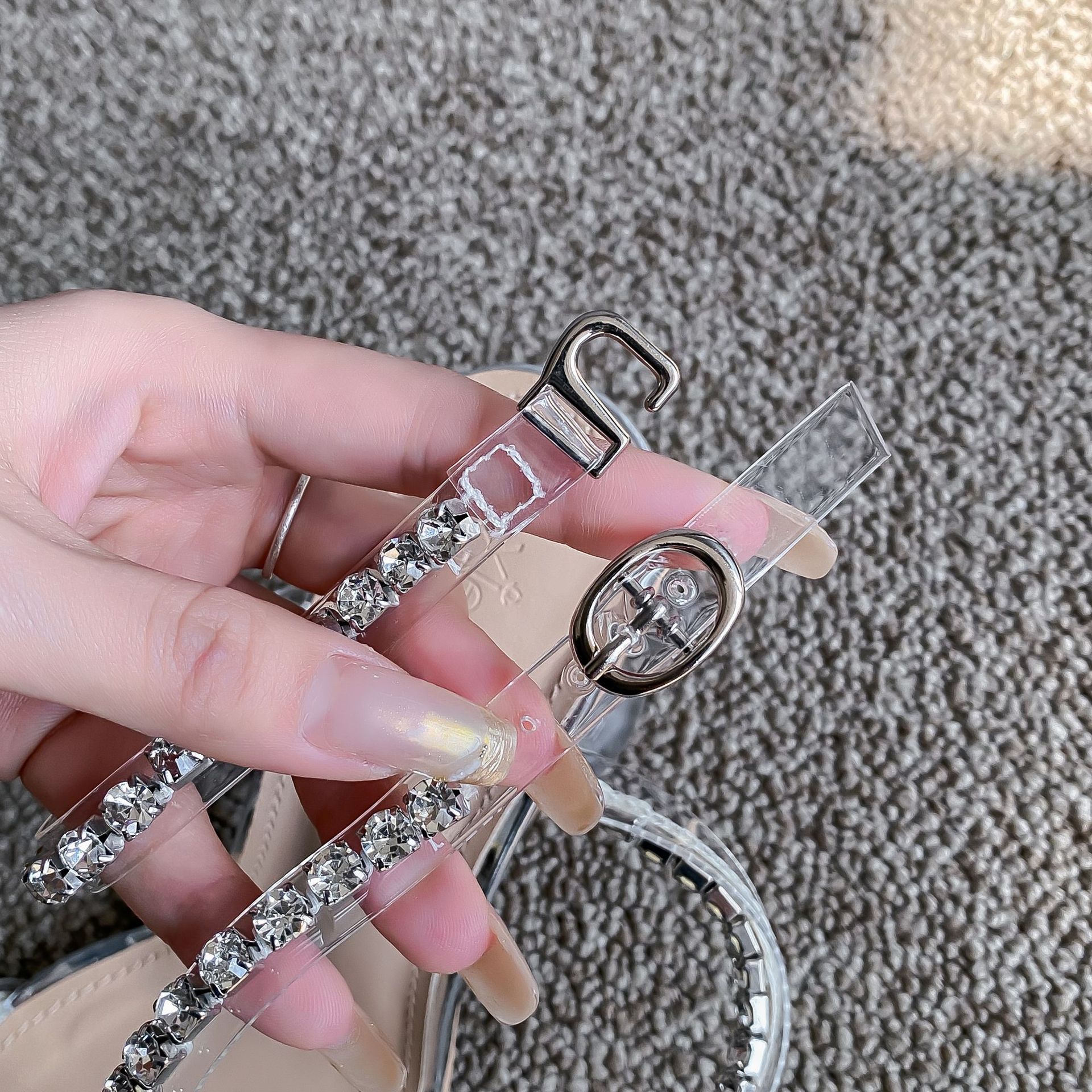 새로운 스타일 투명 하이힐 라인스톤 여성 실버 요정 스타일 우아한 패션 스틸레토 샌들