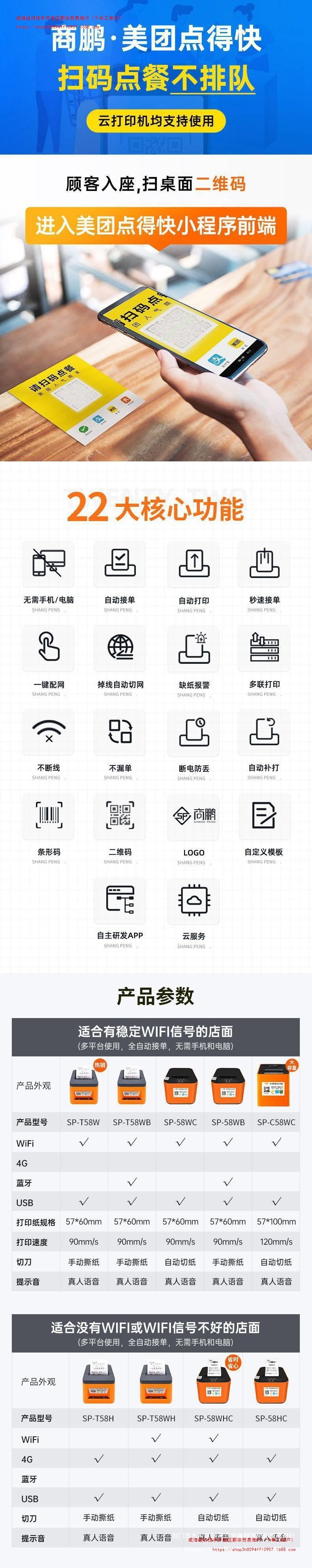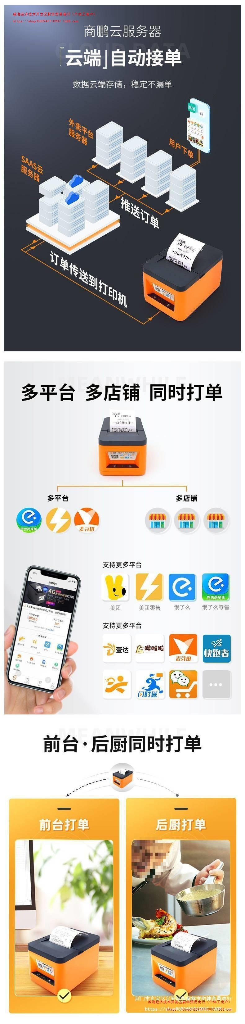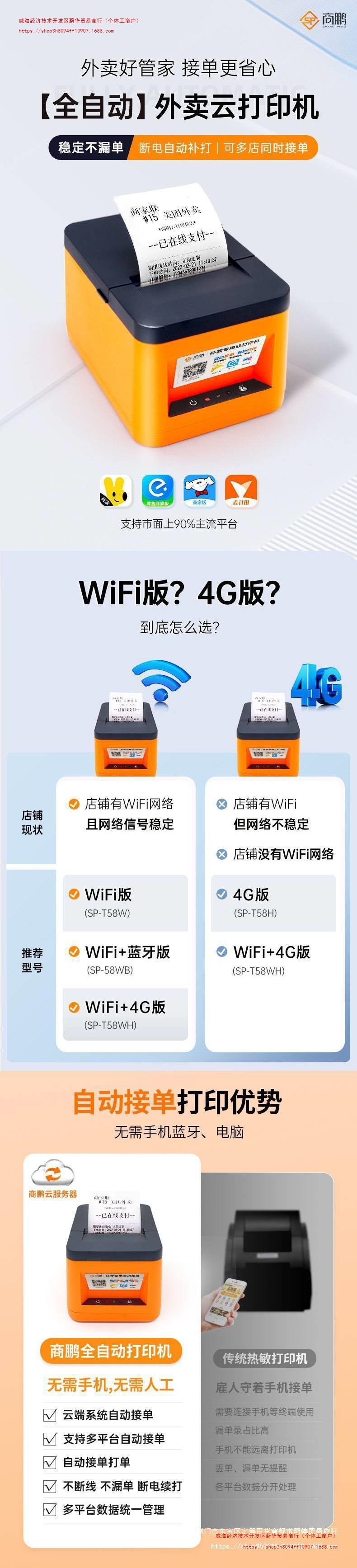 상펭 테이크 아웃 클라우드 프린터 WiFi meituan 배고픈 4G 자동 주문 절단 종이 블루투스 영수증 프린터 뜨거운스토어 가기