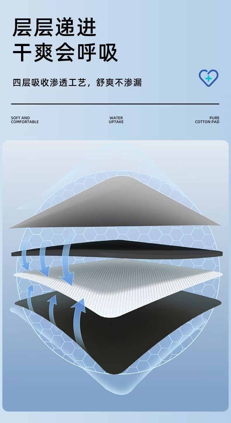 누출 방지 항균 그래핀 세척 가능한 면 항균 속옷 재사용 가능한 패드