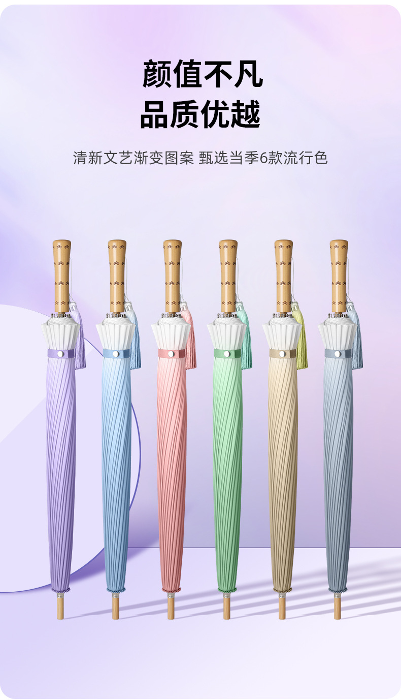 새로운 24-뼈 그라디언트 우산 대나무 손잡이 충격 옷감 바람 방지 인쇄 로고 직선형 우산 광고 우산 재고