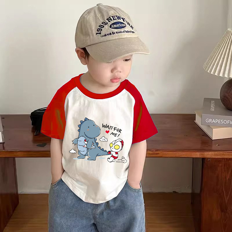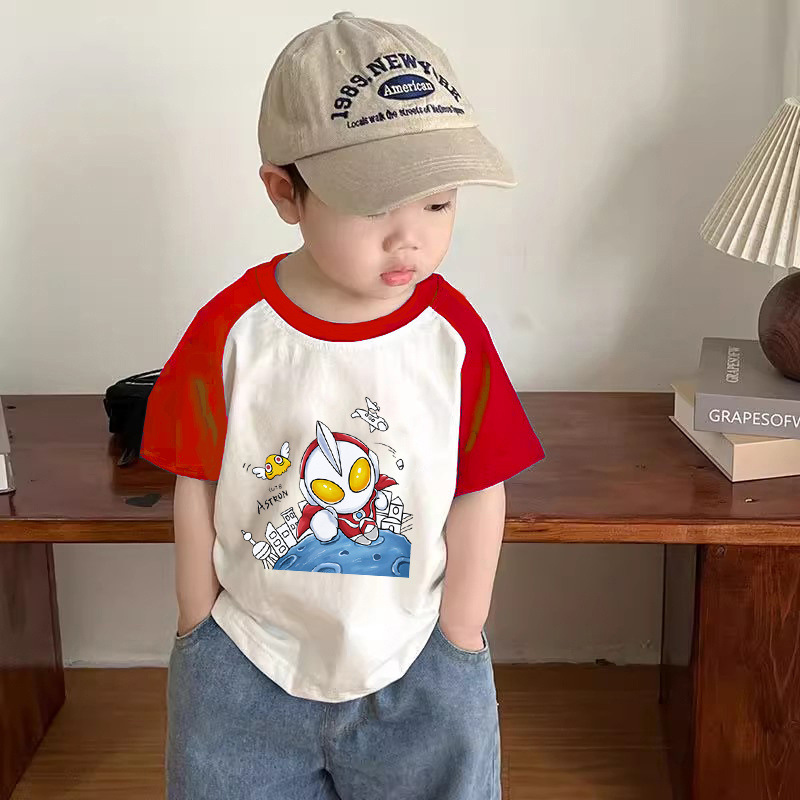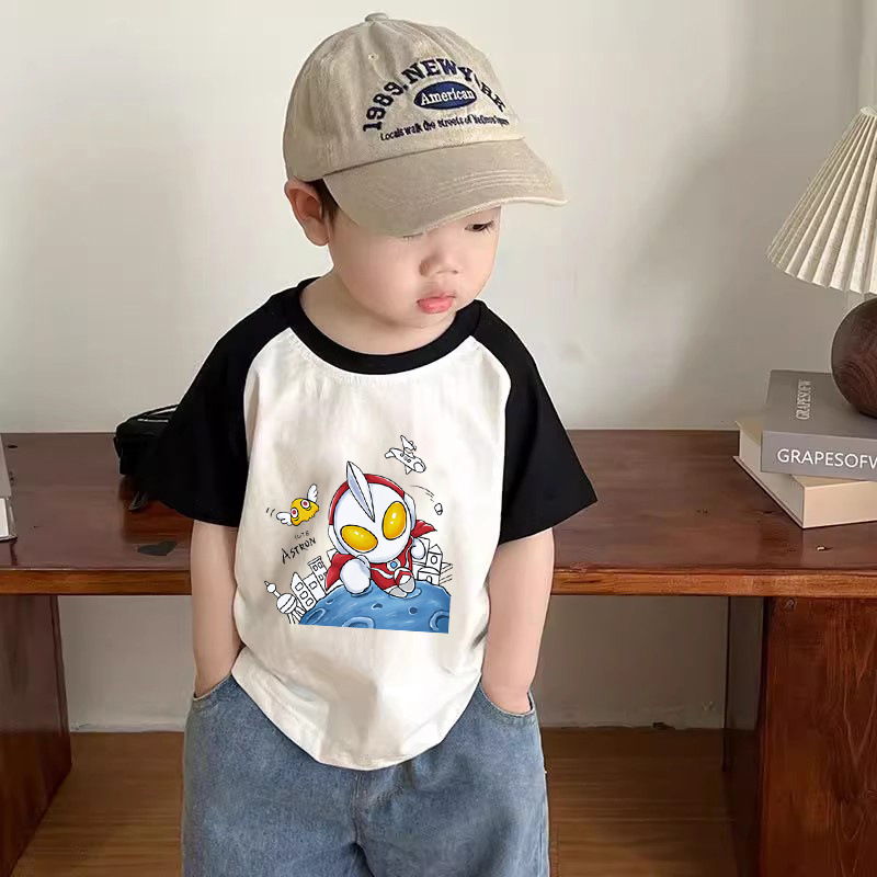 Altman Boys 반팔 티셔츠 여름 2024 새로운 어린이 아기 면베이스 셔츠 만화 유행스토어 가기
