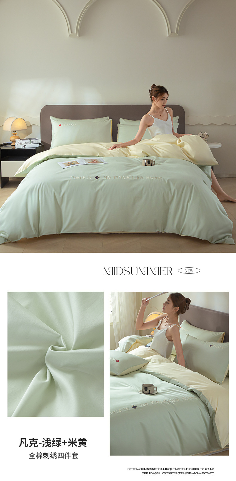 • 라이트 그린 + 베이지 [면 100% 원단으로 피부 친화적이며 알몸으로 자도 좋음]