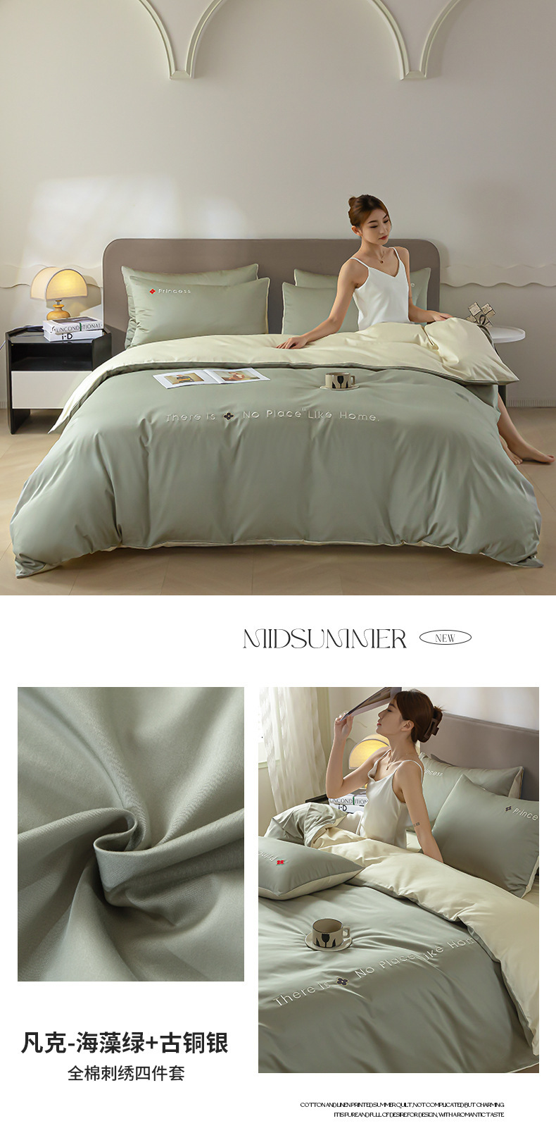 • 해초 그린 + 브론즈 실버 [면 100% 원단으로 피부 친화적이며 알몸으로 자도 좋음]