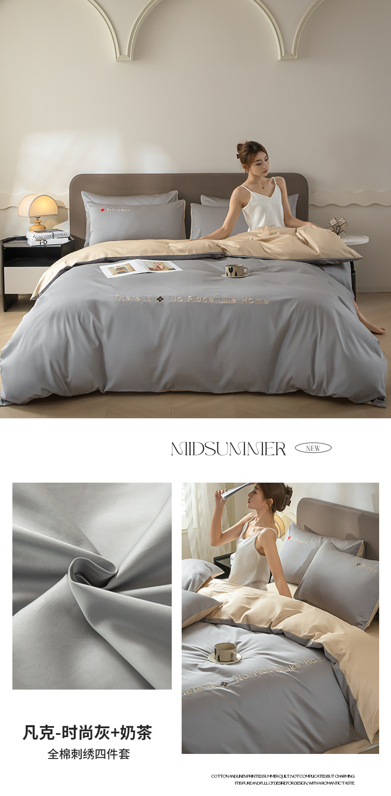 • 패셔너블 그레이 + 밀크티 [면 100% 원단으로 피부친화적, 알몸으로 자도 좋음]
