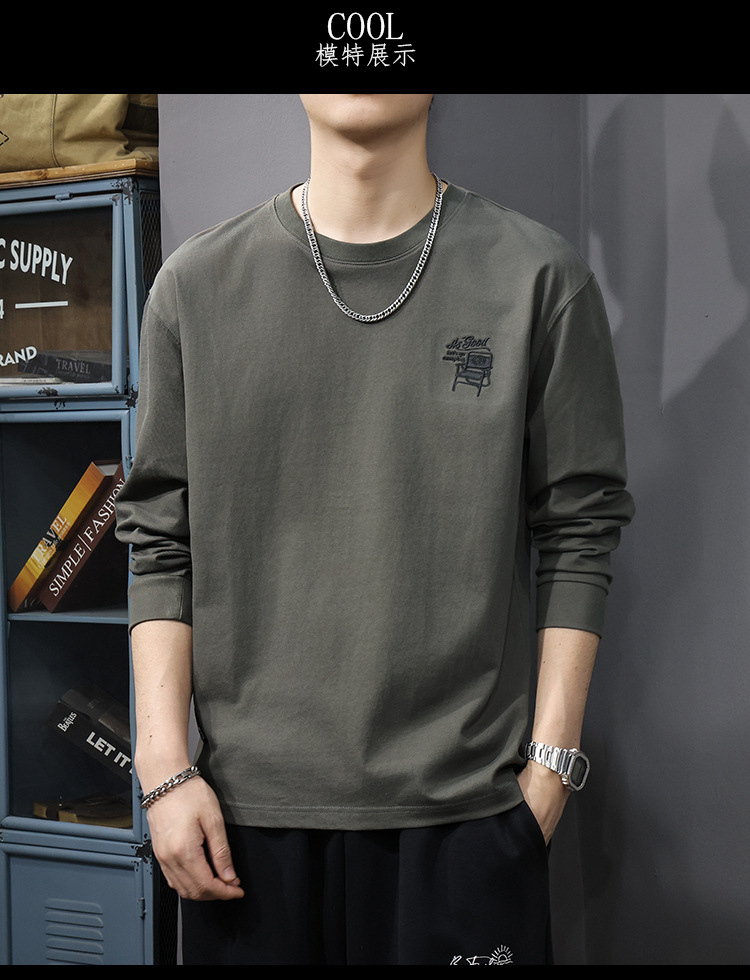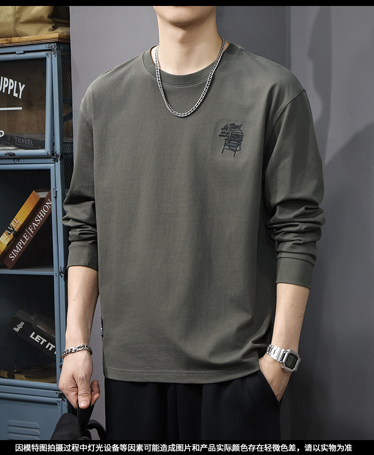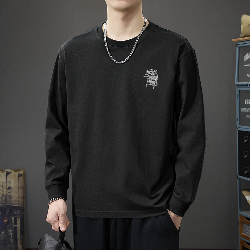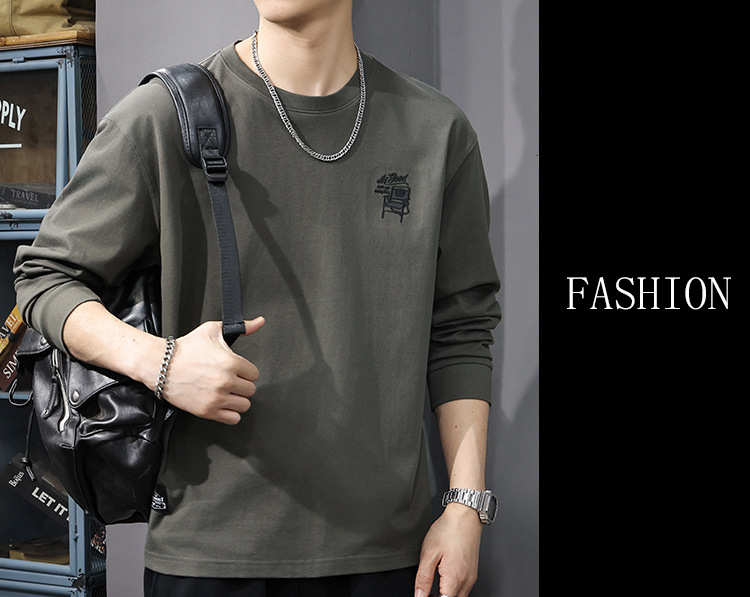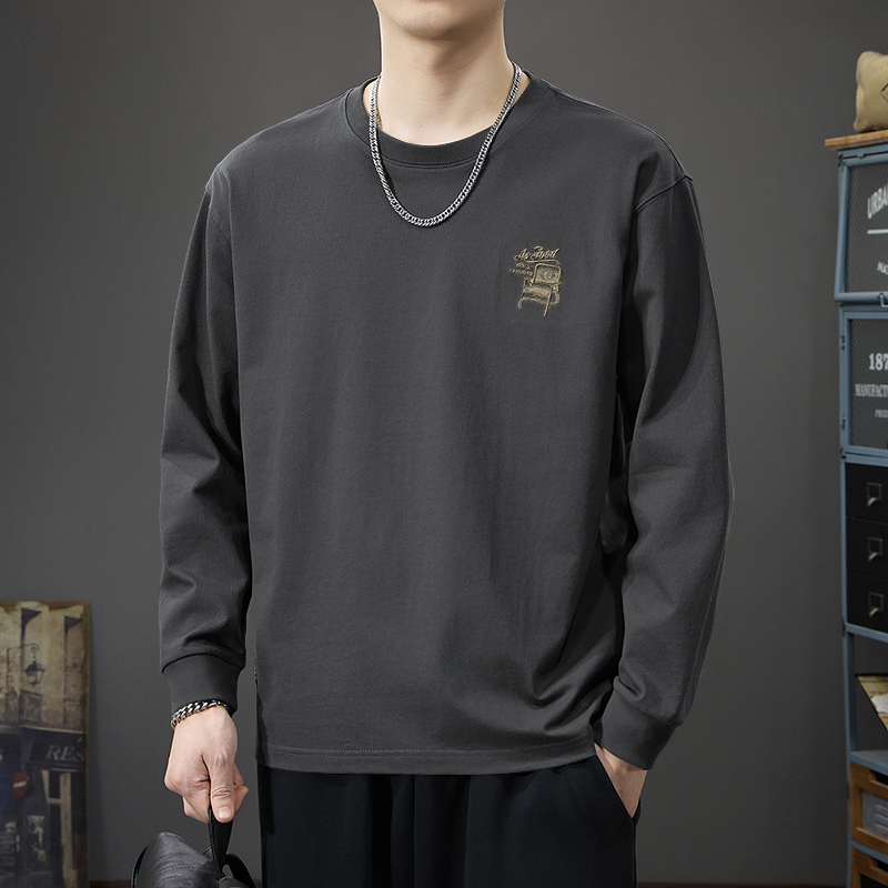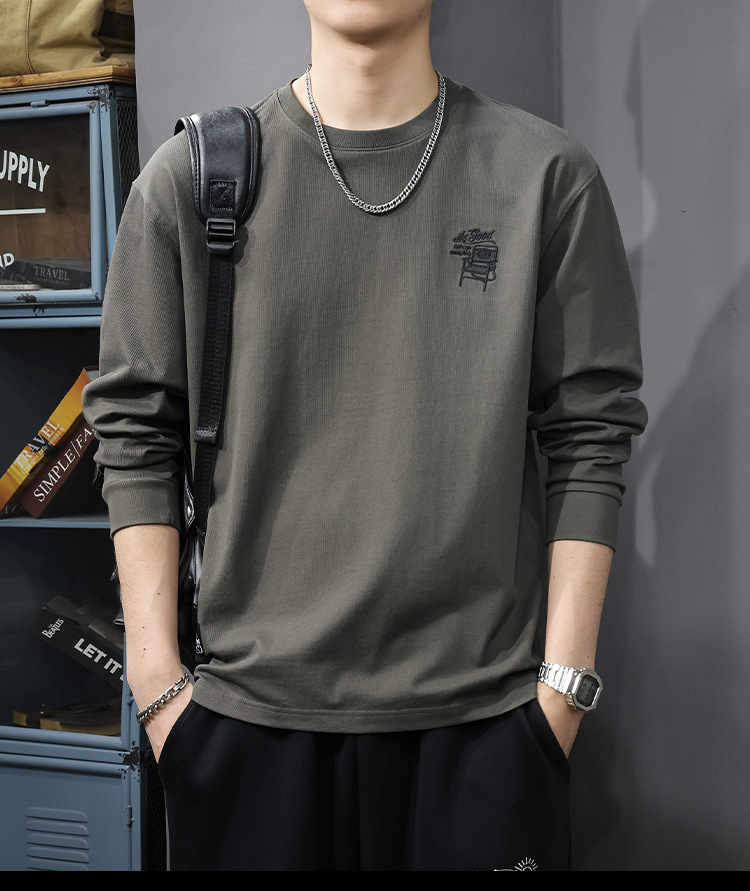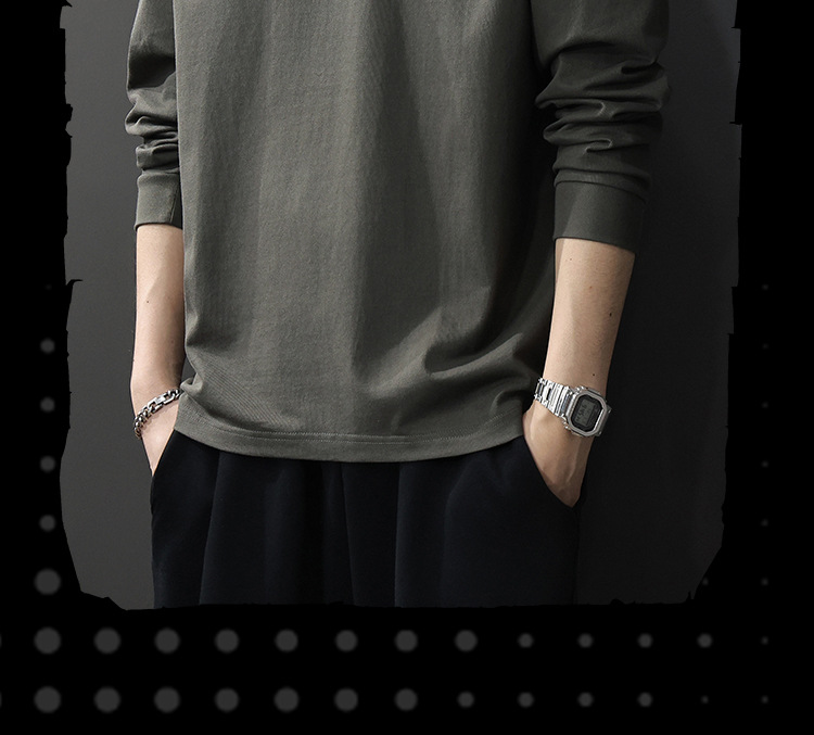 2025 새로운 미국 무거운 긴팔 티셔츠 남성용 트렌디 브랜드 레트로 느슨한 인쇄 순수 면베이스 셔츠 티셔츠 봄과 가을스토어 가기