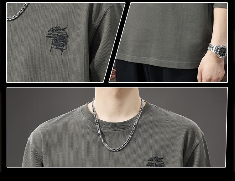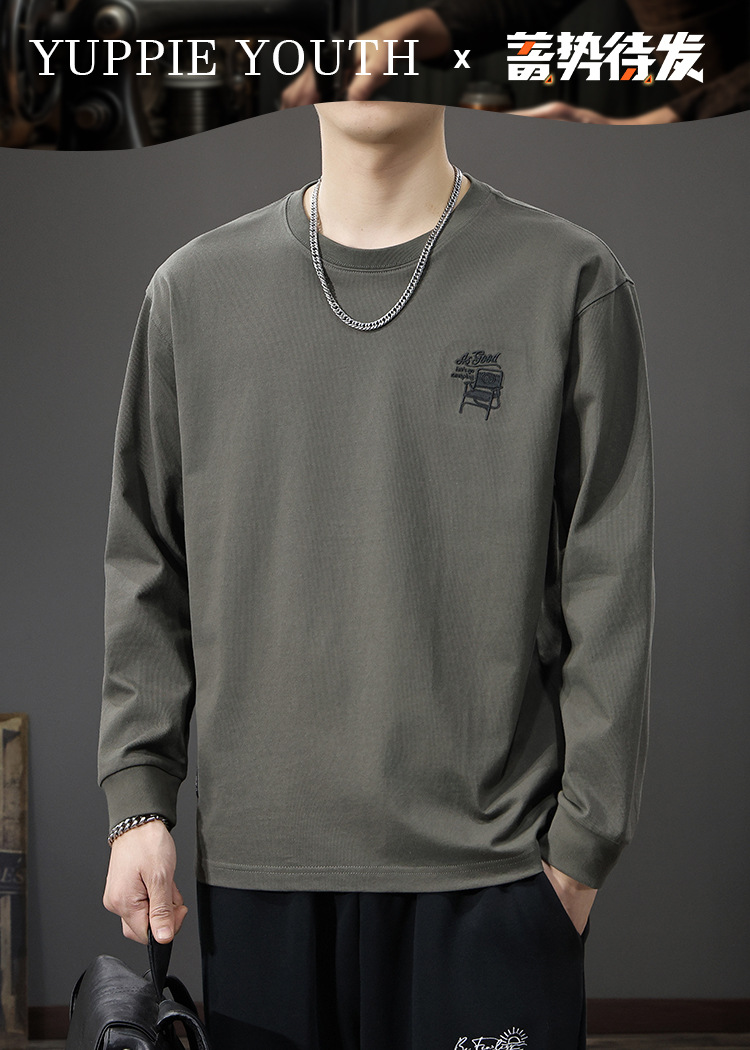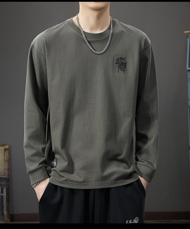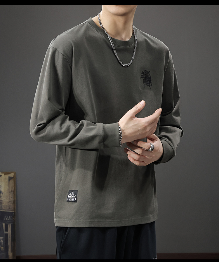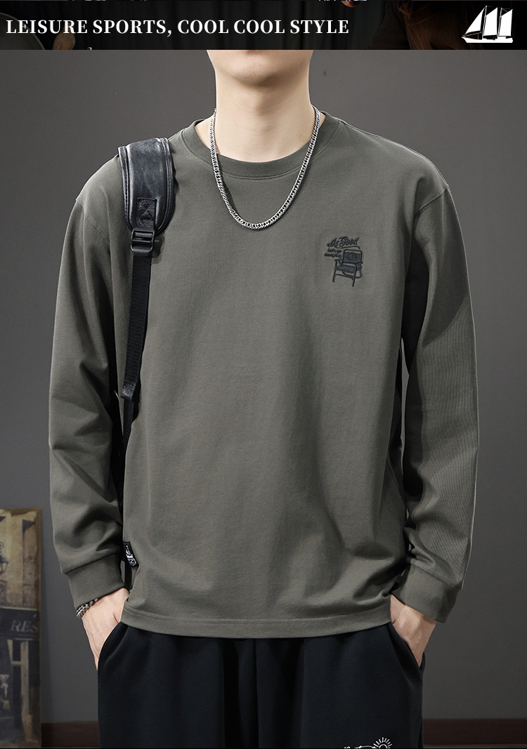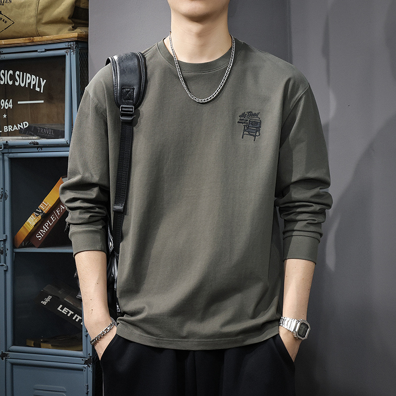 2025 새로운 미국 무거운 긴팔 티셔츠 남성용 트렌디 브랜드 레트로 느슨한 인쇄 순수 면베이스 셔츠 티셔츠 봄과 가을스토어 가기