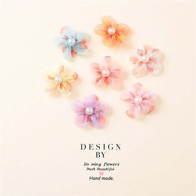 DIY 진주 인쇄 직물 5 꽃잎 원사 꽃 액세서리 신발 꽃 헤어 액세서리 수제 액세서리 복숭아 원사 5 꽃잎