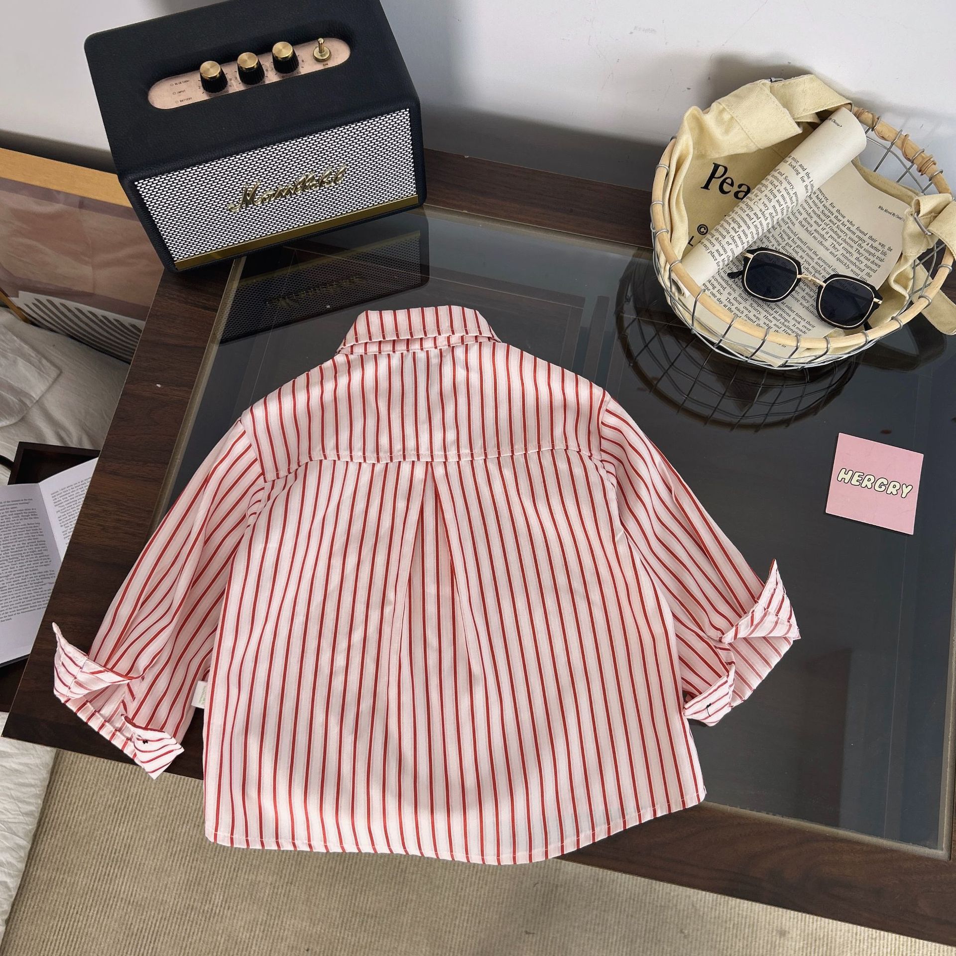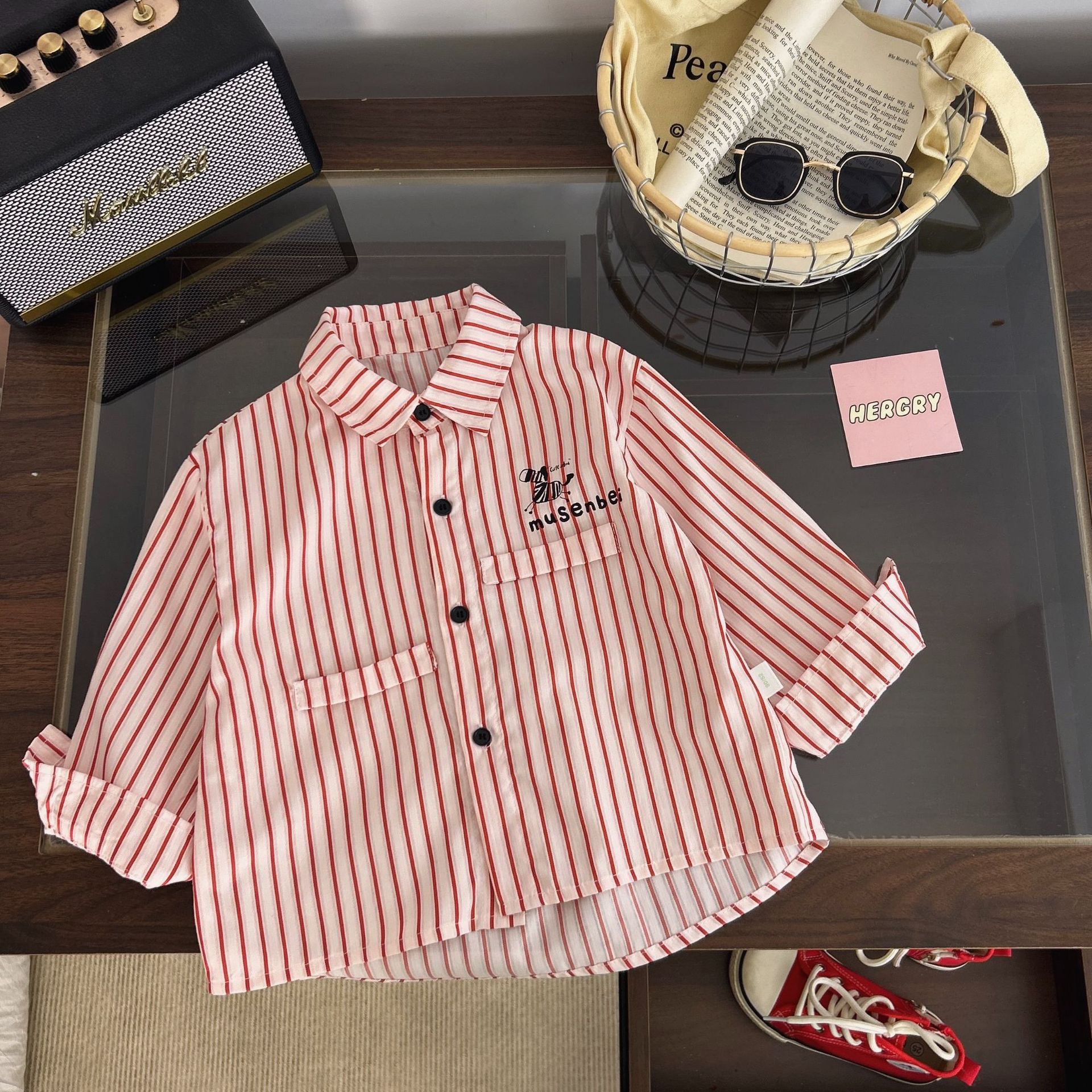 Midi 아동복 소년 셔츠 봄, 가을 2025 새로운 줄무늬 긴팔 셔츠 베이비 프린트 한국 스타일 핫 스트리트스토어 가기