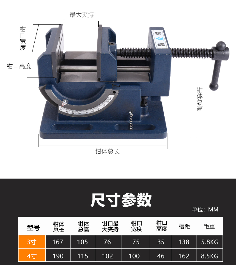 윈 칼라 미국 틸트 가이드로드 타입 앵글 플랫 클램프 드릴링 머신 벤치 드릴 90 도 틸트 작은 바이스 3 인치 4 인치