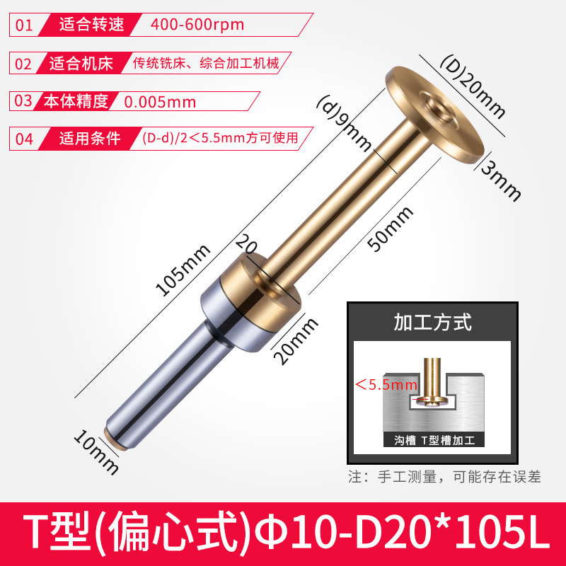 RR 편심 T 자형 서브 로드 T 자형 홈 테스트 헤드 D30 D20 D17 직선 바디 라이트닝 티타늄 도금 비 자기 직접 검색