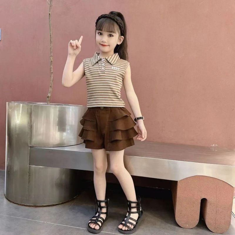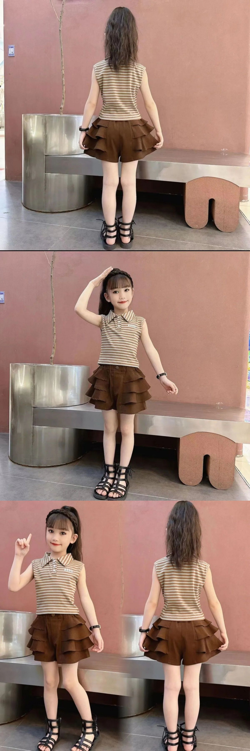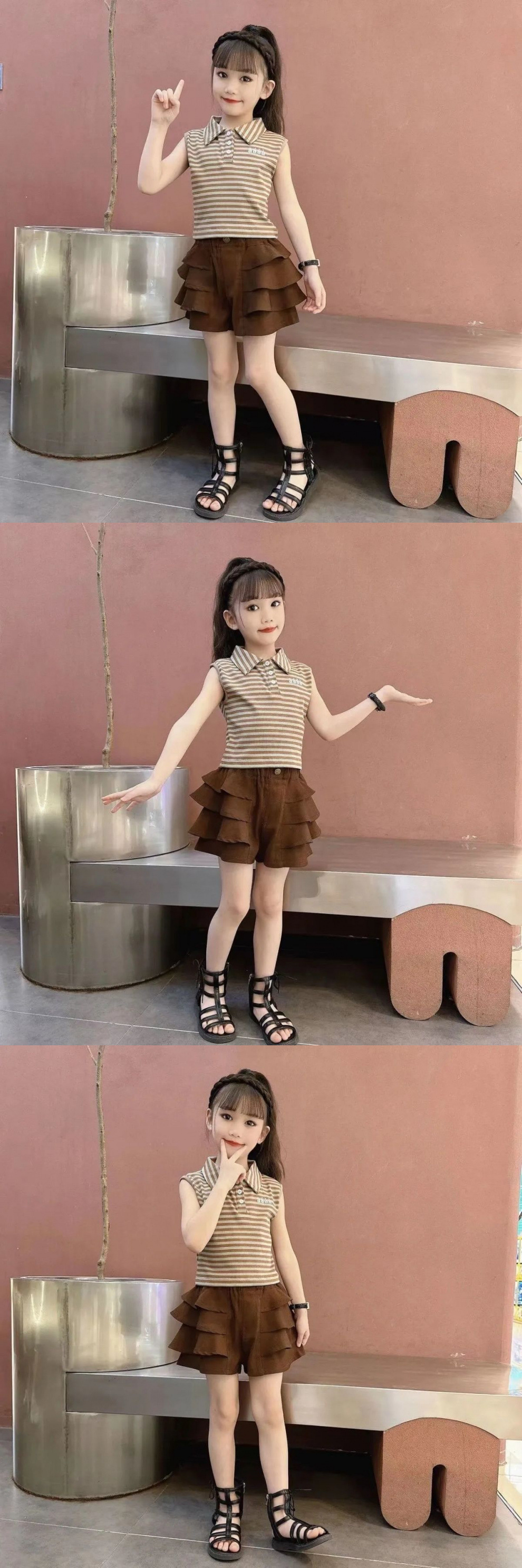 소녀 세트 여름 서양식 새로운 2025 어린이 줄무늬 인터넷 기념 민소매 폴로 셔츠 투피스 여름 원피스