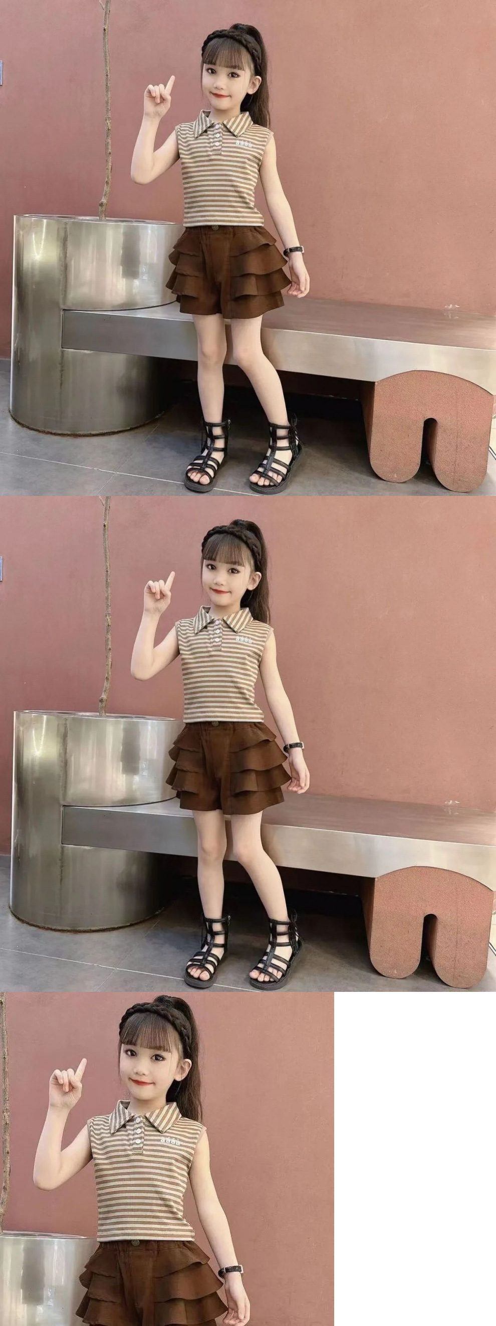 소녀 세트 여름 서양식 새로운 2025 어린이 줄무늬 인터넷 기념 민소매 폴로 셔츠 투피스 여름 원피스스토어 가기