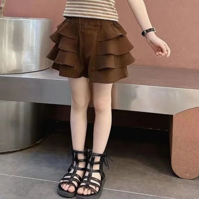 • 브라운 스트라이프 폴로 셔츠 + 곰팡이 러플 팬츠 스커트