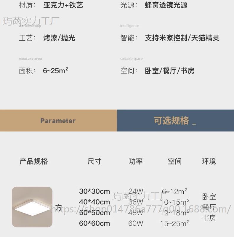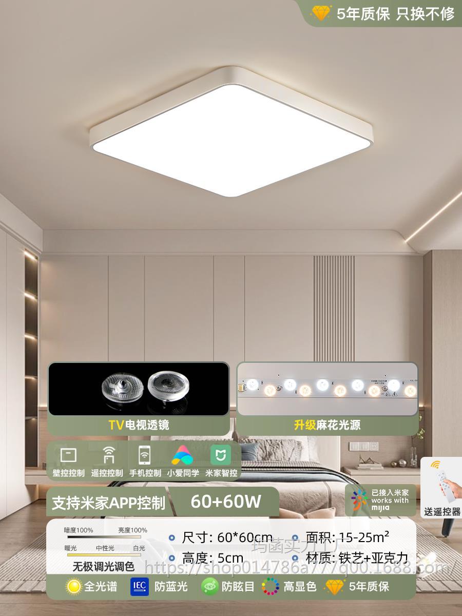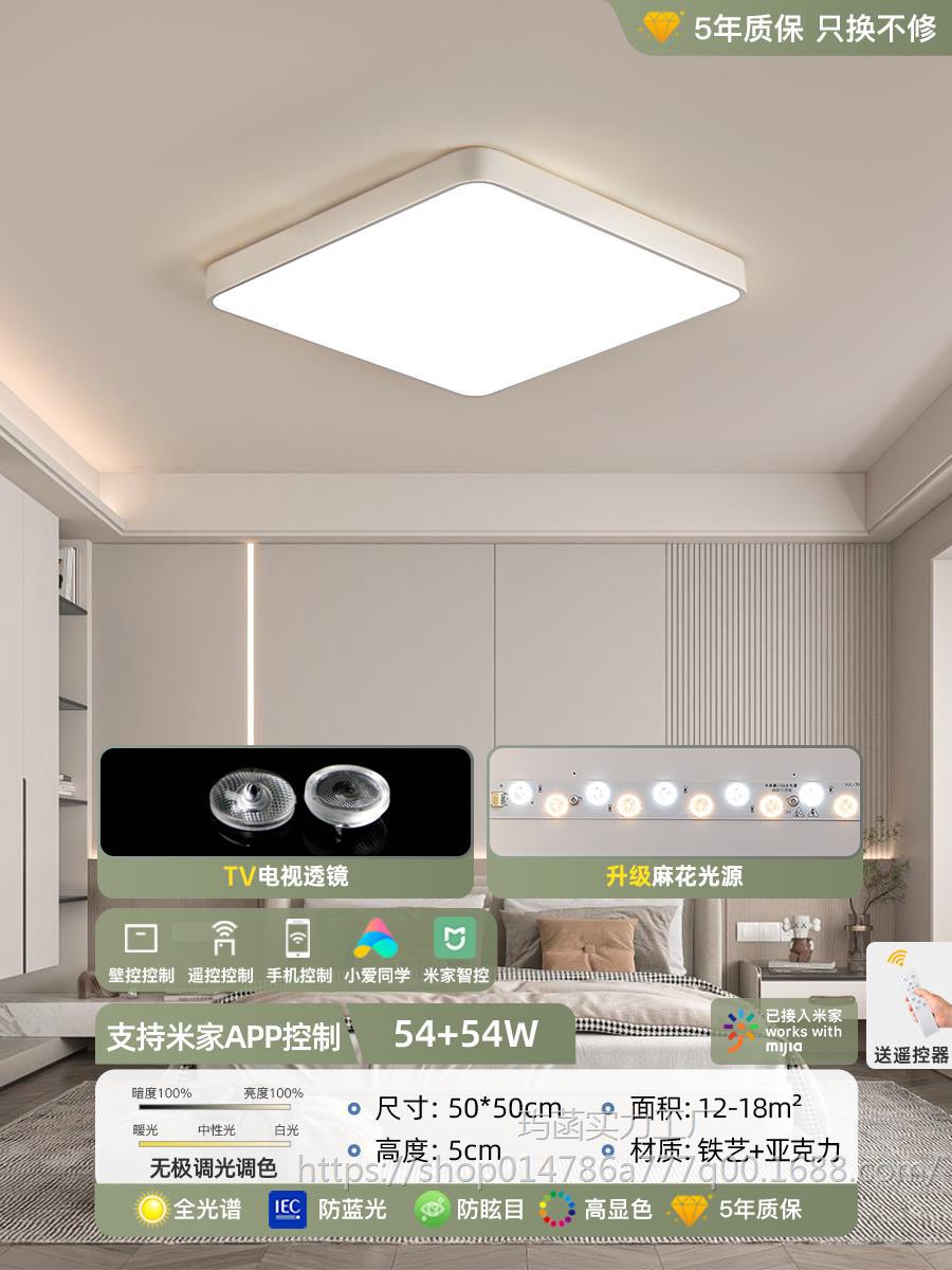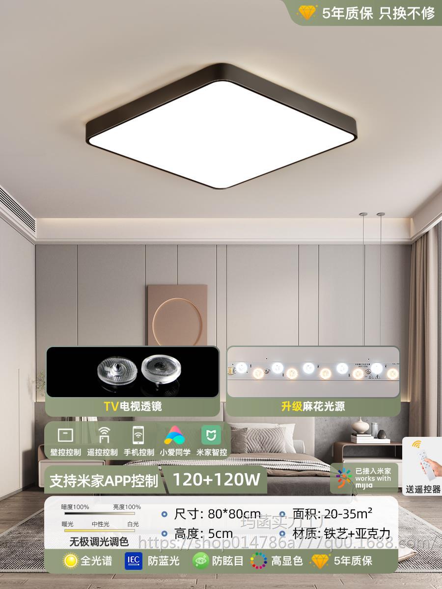 • 풀 스펙트럼 로컬 화이트 80*80cm-원격 제어+Mijia APP+Xiaoai 120W