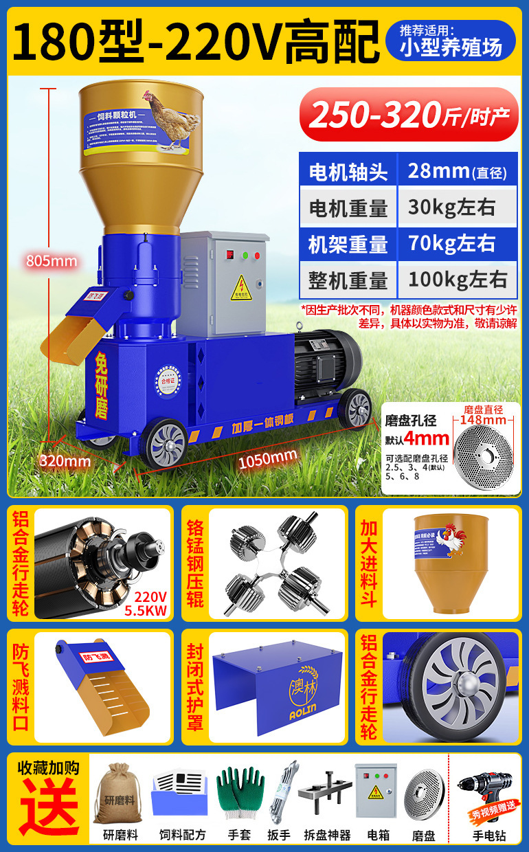 • 180 농민지원금◆380V/5.5KW 순동 모터 [호퍼 증가 + 연삭 없음 +