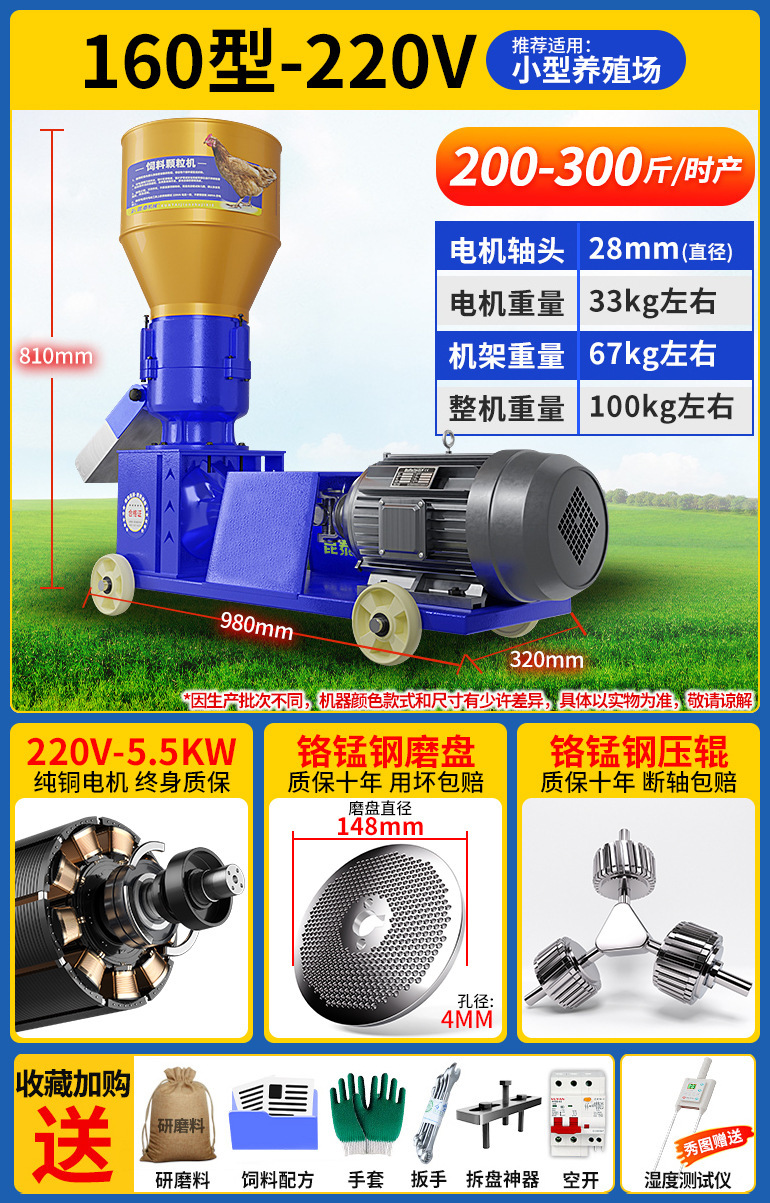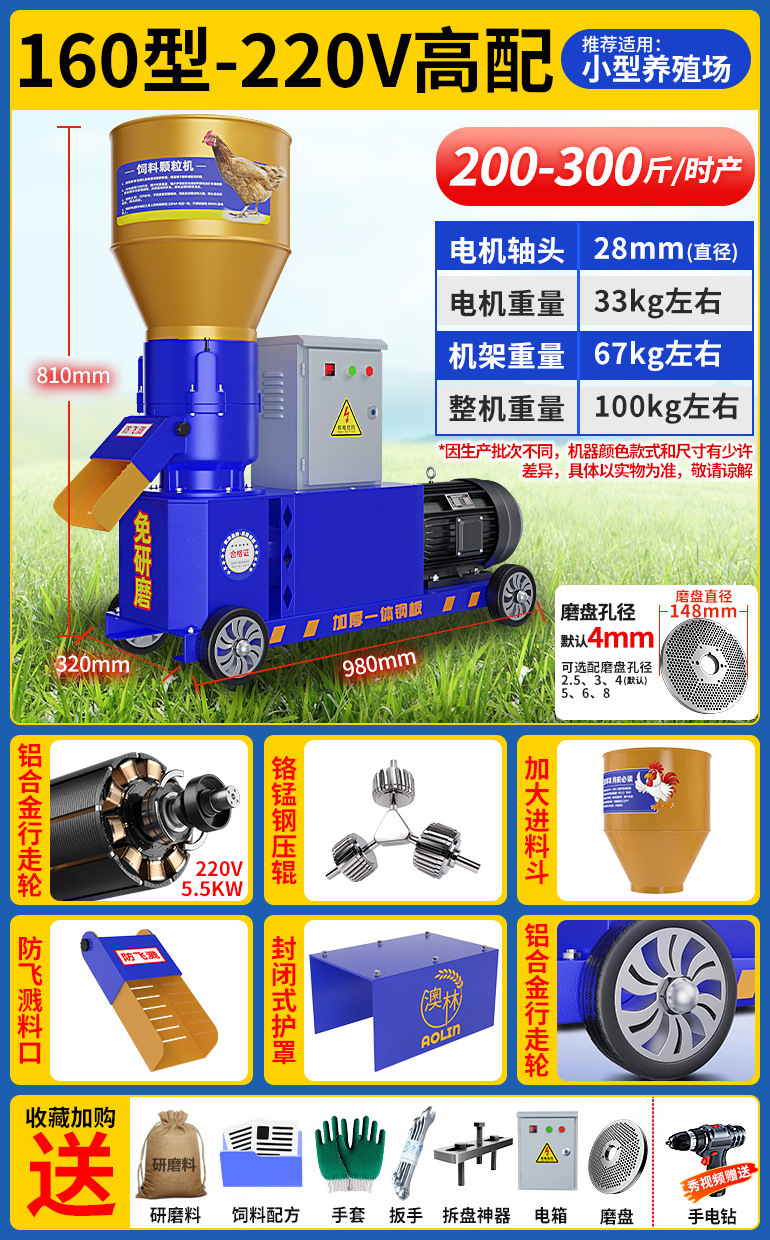 • 160 농민지원금◆380V/5.5KW 순동 모터 [호퍼 증가 + 연삭 없음 +