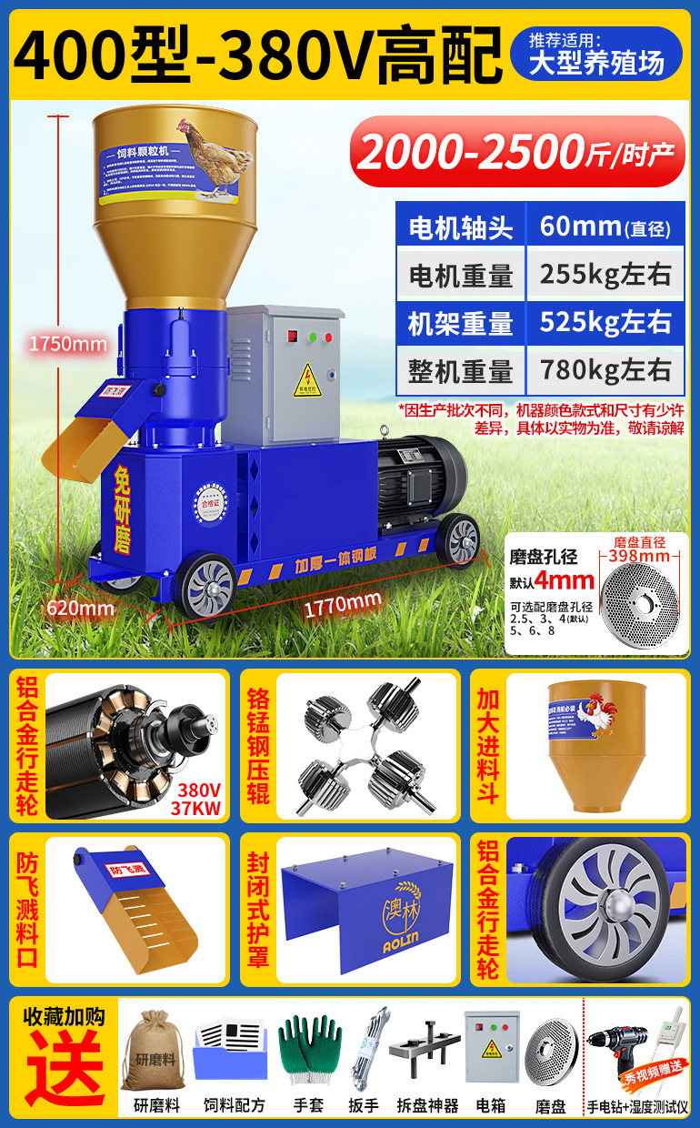 • 유형 400 높은 구성◆380V/37KW 순수 구리 모터 [확대 호퍼 + 연삭 없음 + 무료