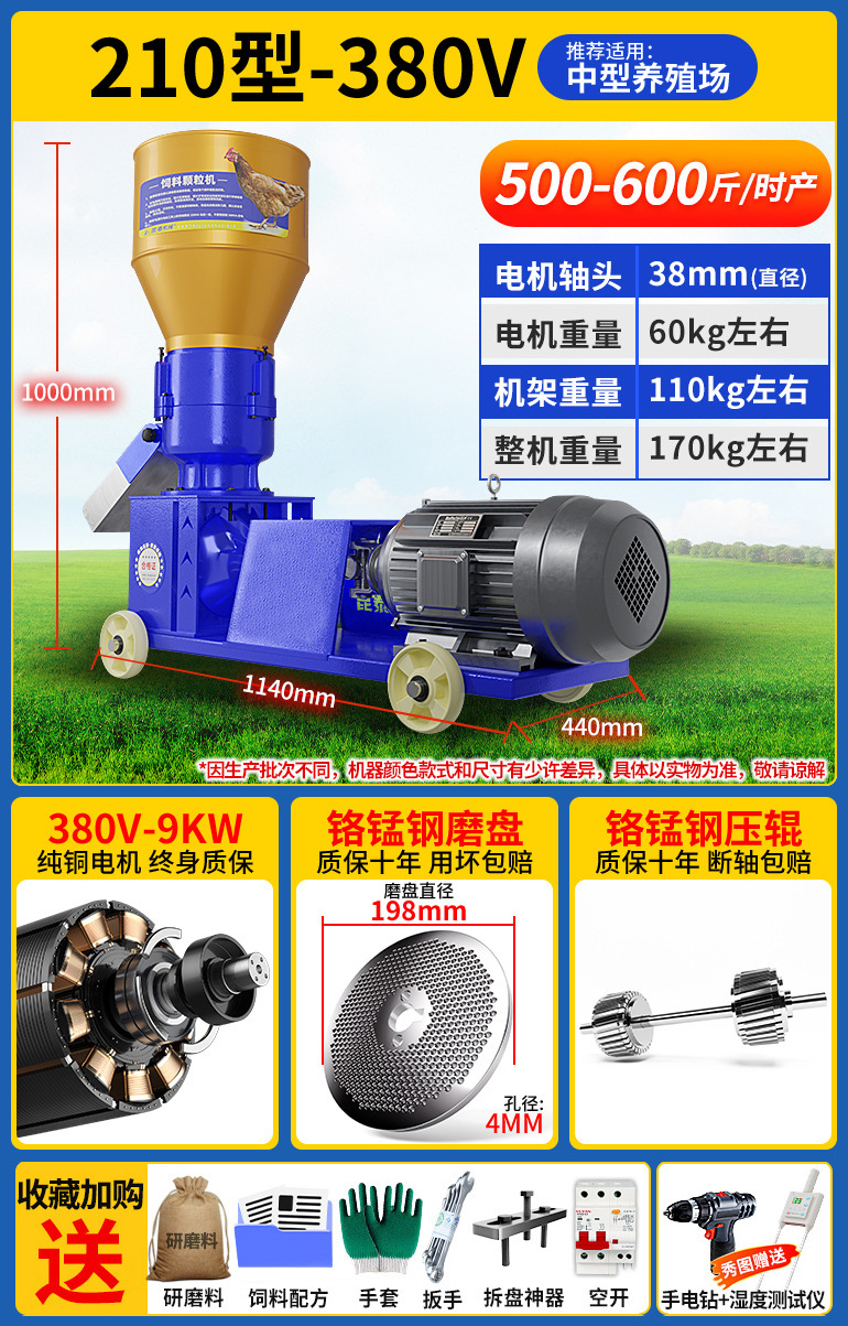 • 농민지원금 210형◆2개의 압력 롤러/380V/9KW 순수 구리 모터 [확대 호퍼 + 무료