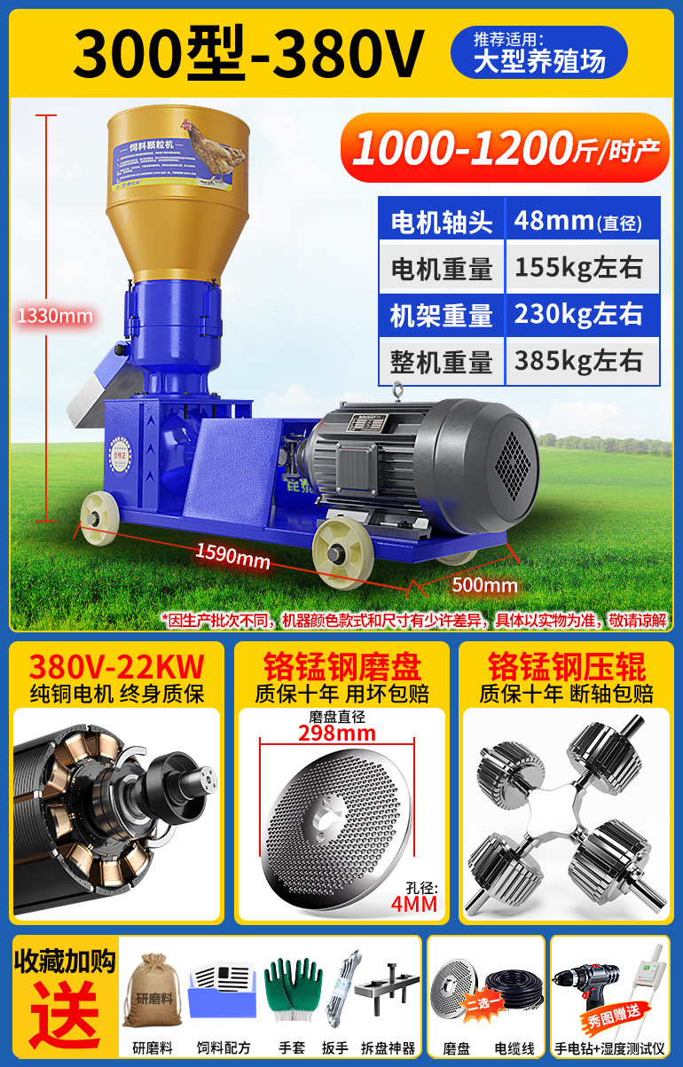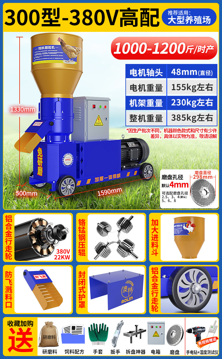 • 유형 300 높은 구성◆380V/22KW 순수 구리 모터 [확대 호퍼 + 연삭 없음 + 안티