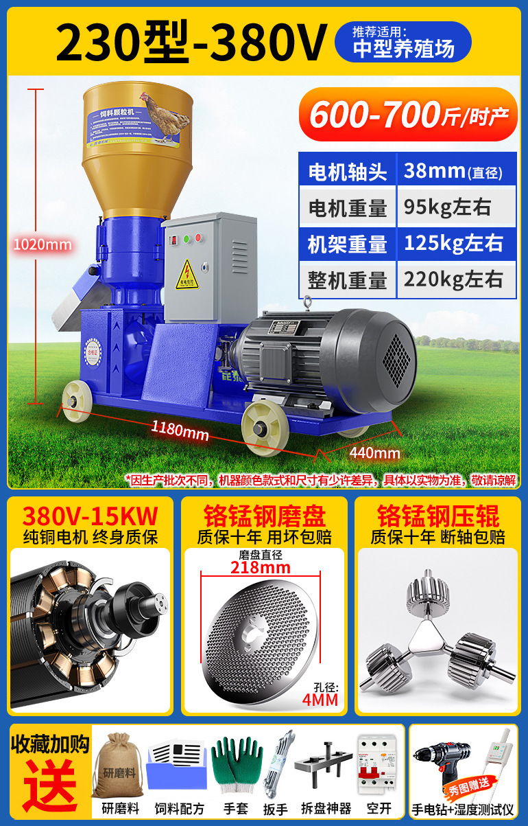 • 유형 230 고급 380V/15KW 순수 구리 모터 [확대 호퍼 + 연삭 없음 + 무료 연삭