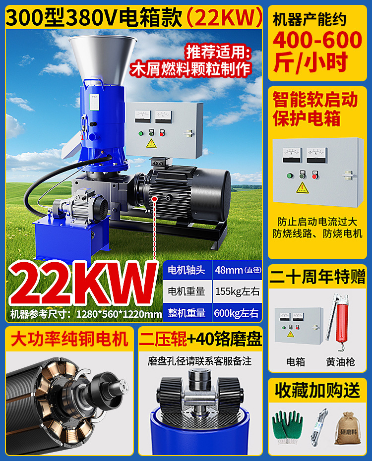 • 300형 바이오매스 모델◆380V/22KW 순수 구리 모터 [연삭 없음 + 소프트 스타트]