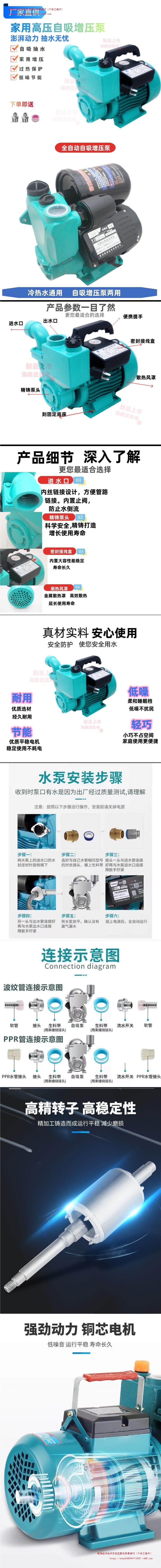 가정용 자체 프라이밍 펌프 220V 작은 수돗물 파이프 라인 부스터 펌프 조용한 우물 펌프 기계 고압 부스터 펌프스토어 가기