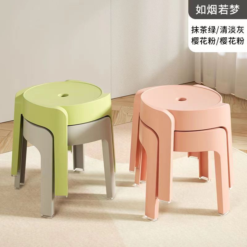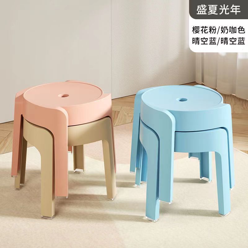 작은 의자 가정용 두꺼운 플라스틱 둥근 의자 어린이 의자 쌓을 수 있는 풍차 의자 거실 욕실 커피 테이블 낮은 의자스토어 가기