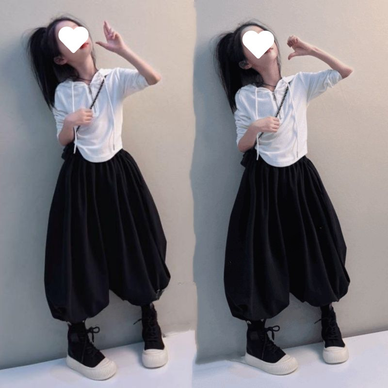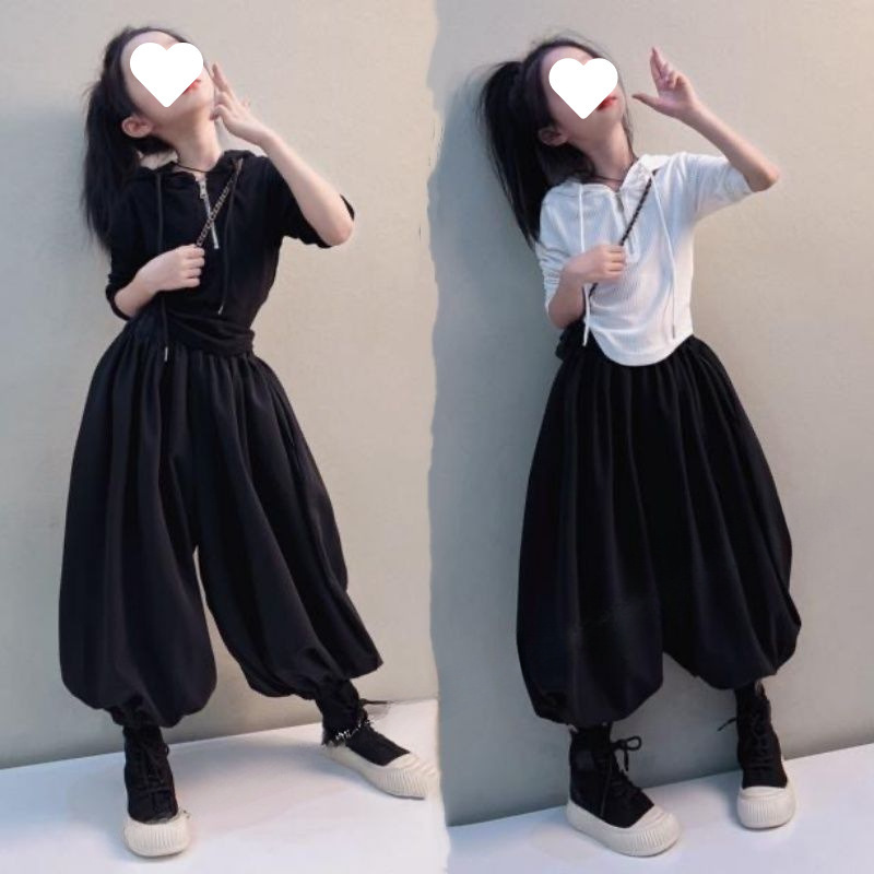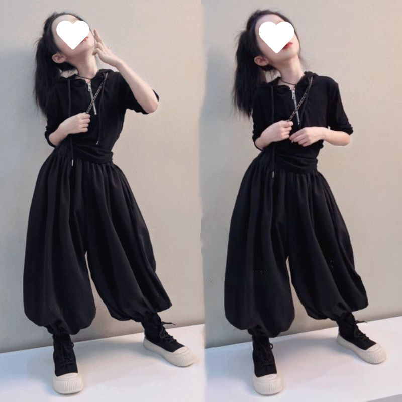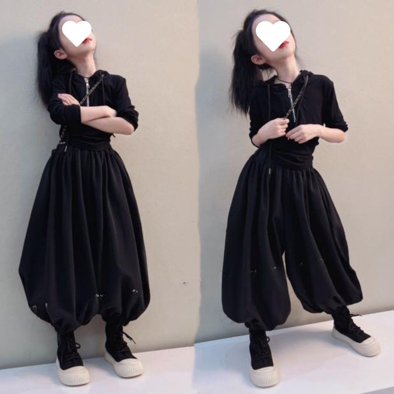 소녀 가을 후드 탑 바지 느슨한 유행 할란 바지 세트 큰 어린이 블루머 어린이 스포츠 바지스토어 가기