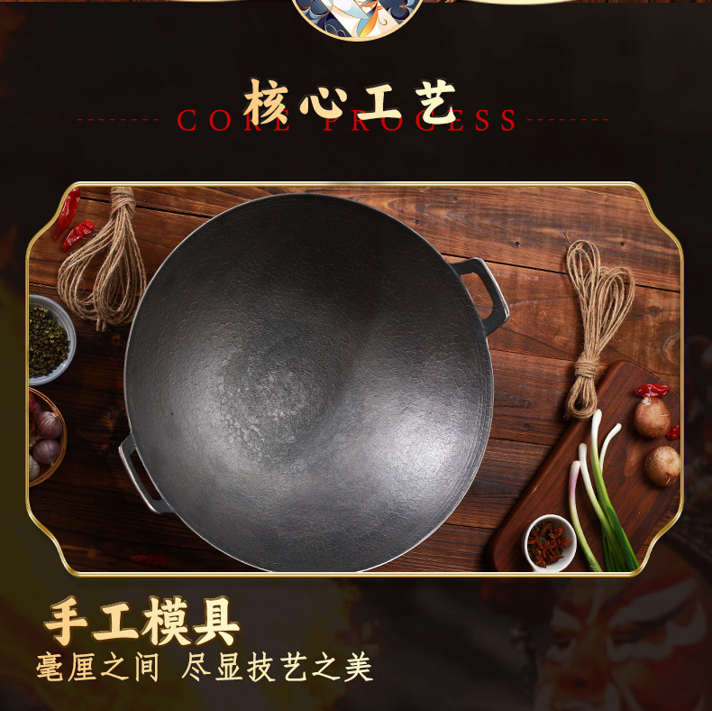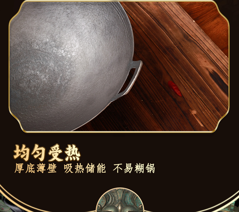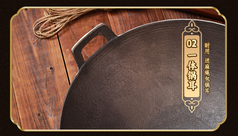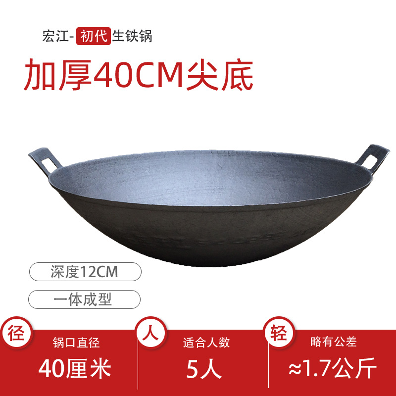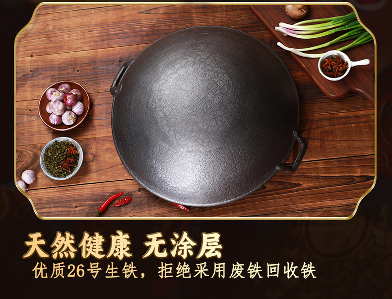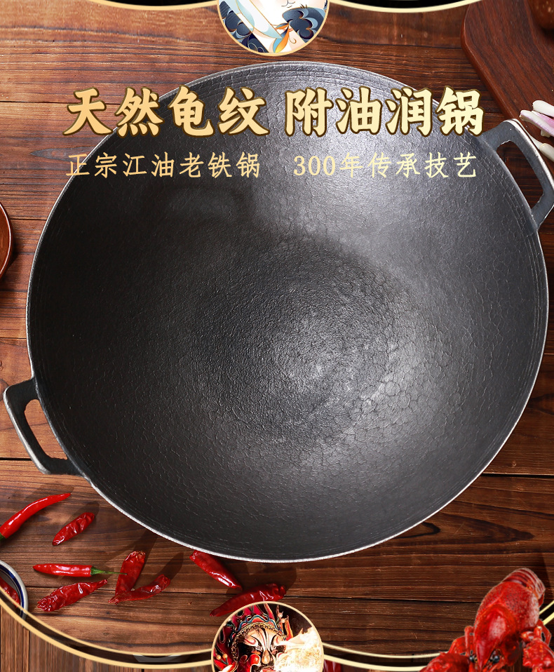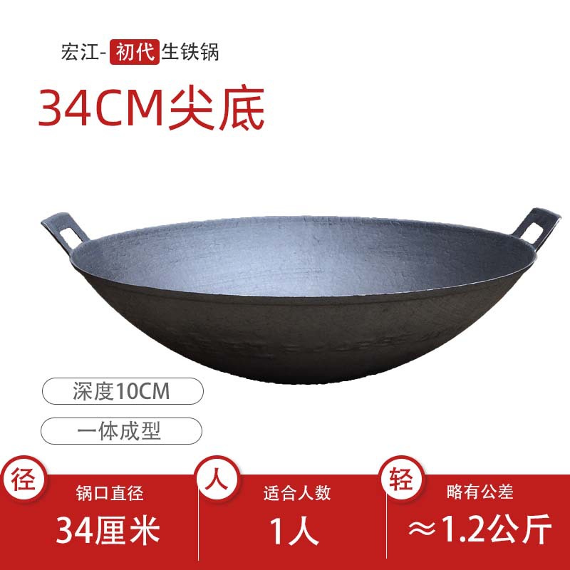Jiangyou 구식 전통적인 이중 귀 철 냄비 뾰족한 바닥 철 냄비 코팅되지 않은 비 스틱 냄비 둥근 바닥 주철 냄비 잔치로 튀긴 주철 냄비스토어 가기