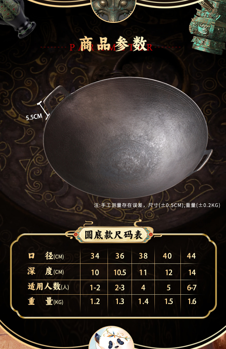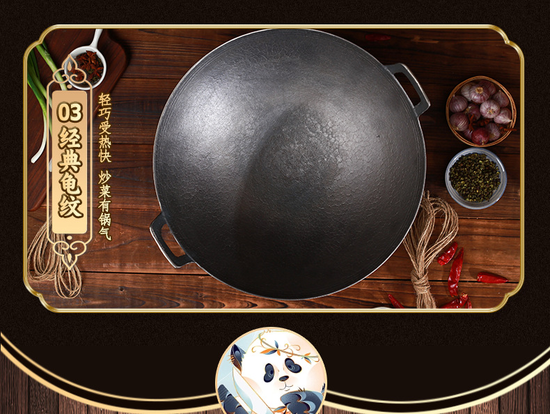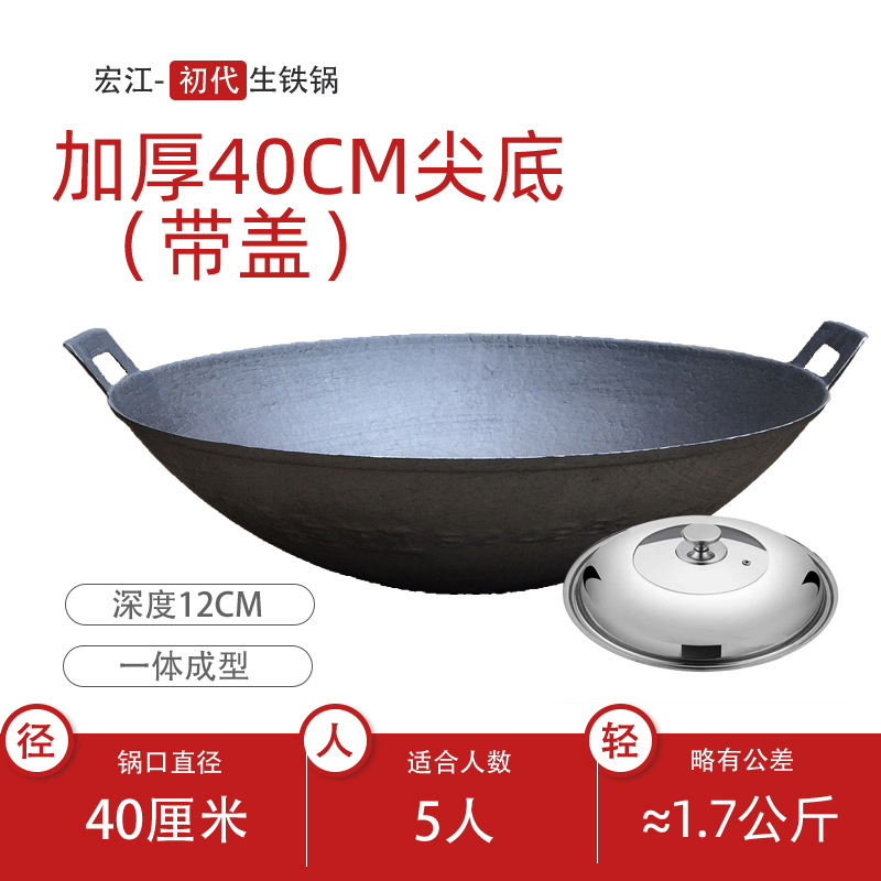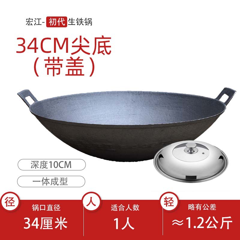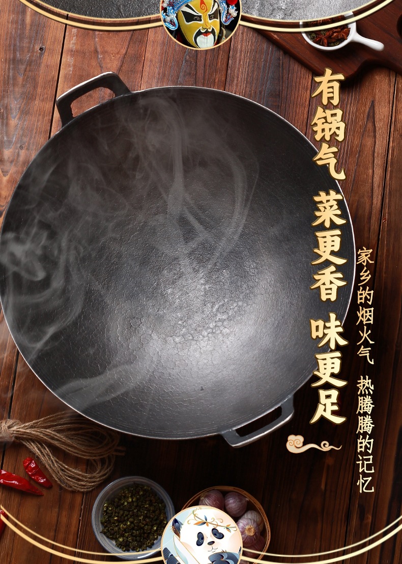 Jiangyou 구식 전통적인 이중 귀 철 냄비 뾰족한 바닥 철 냄비 코팅되지 않은 비 스틱 냄비 둥근 바닥 주철 냄비 잔치로 튀긴 주철 냄비스토어 가기