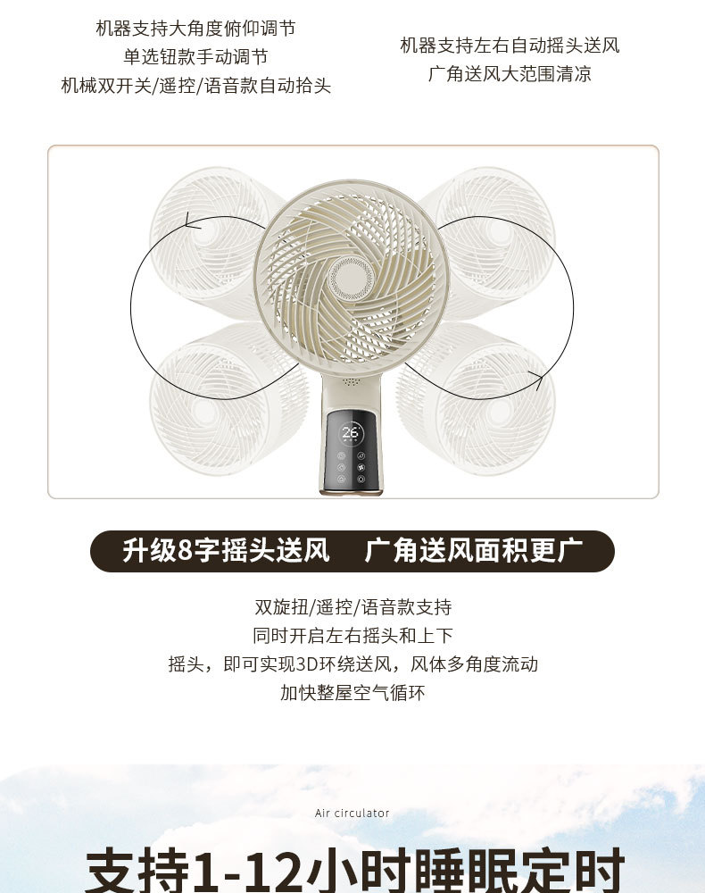 새로운 공기 순환 팬 홈 음성 원격 제어 바닥 팬 음소거 테이블 이중 목적 팬 선물 도매
