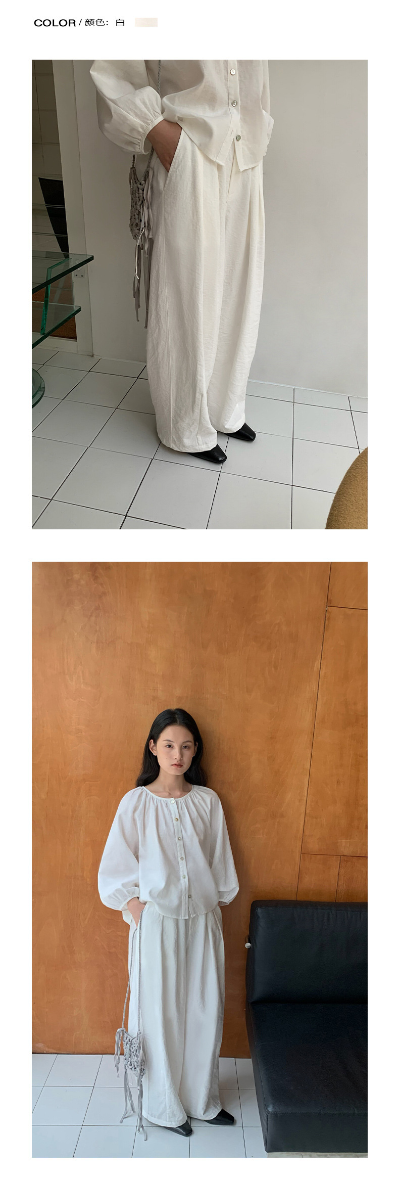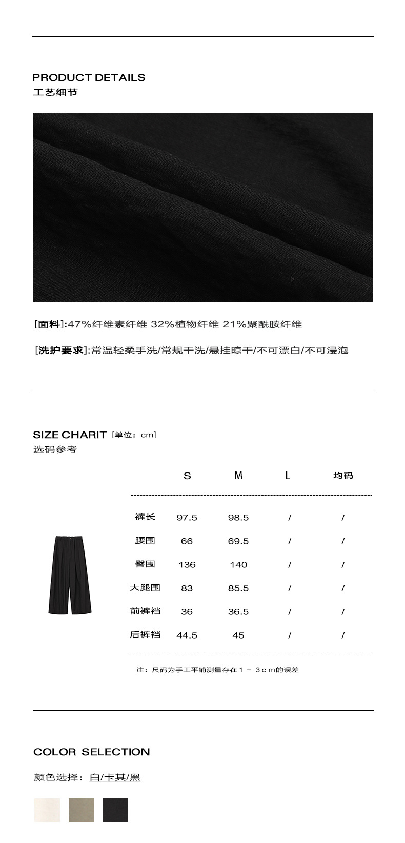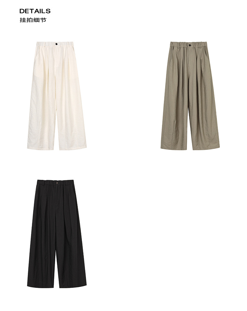 TG 간단한 주름 넓은 다리 스트레이트 캐주얼 바지 여자 2025 봄 새로운 도착 Elapto Waist 올 매치 바지 24647