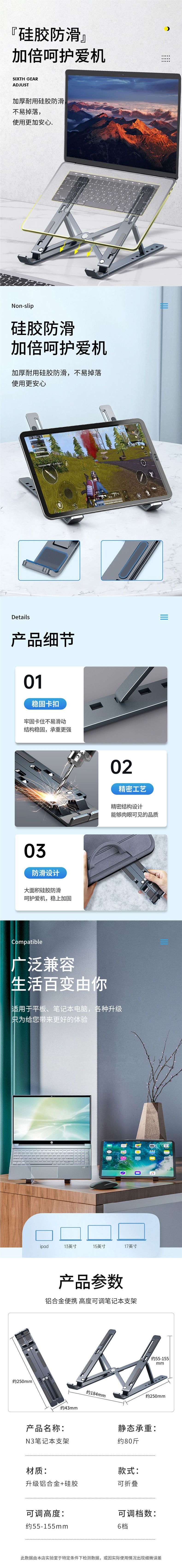 노트북 스탠드 브래킷 데스크톱 플러스 강화 라디에이터 접이식 휴대용 지원 중단 수직 조정