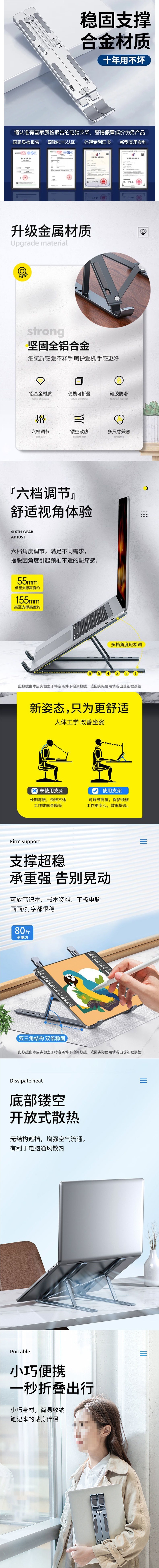 노트북 스탠드 브래킷 데스크톱 플러스 강화 라디에이터 접이식 휴대용 지원 중단 수직 조정스토어 가기