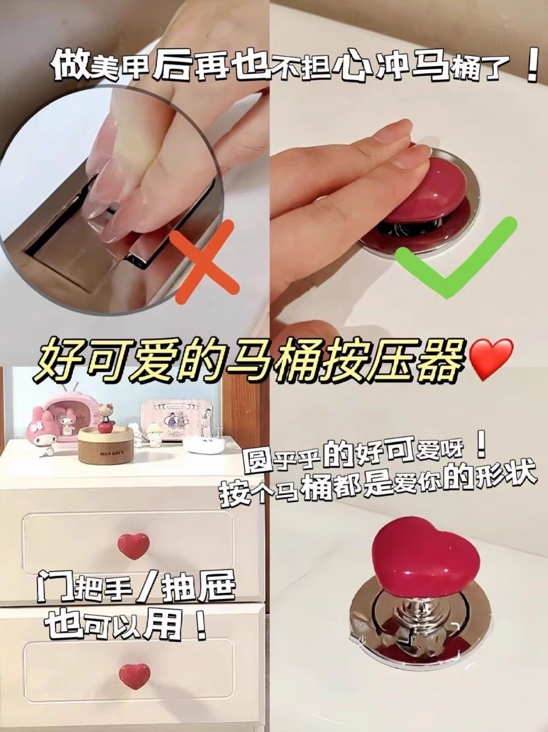 화장실 프레스 플러시 특수 버튼 프레스 네일 아트 러브 스위치 화장실 핸들러 긴 쉐이크 톤스토어 가기