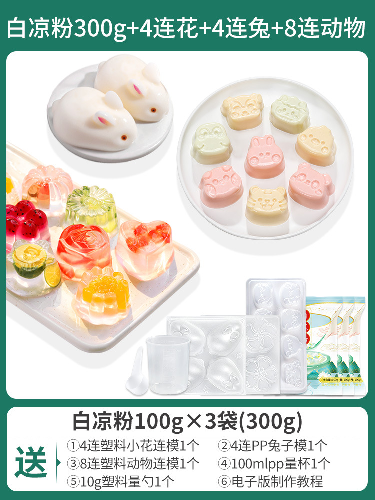 • 화이트 젤리 300g [작은 꽃 4개 + 토끼 4개 + 동물 8개 + 계량컵 스푼 + 튜토리얼]