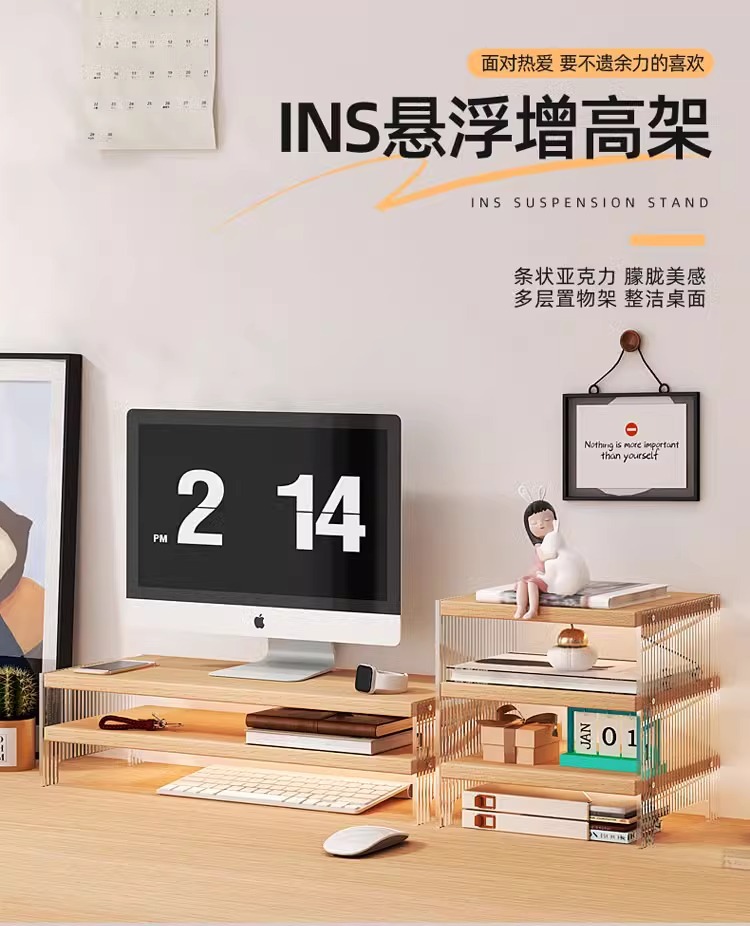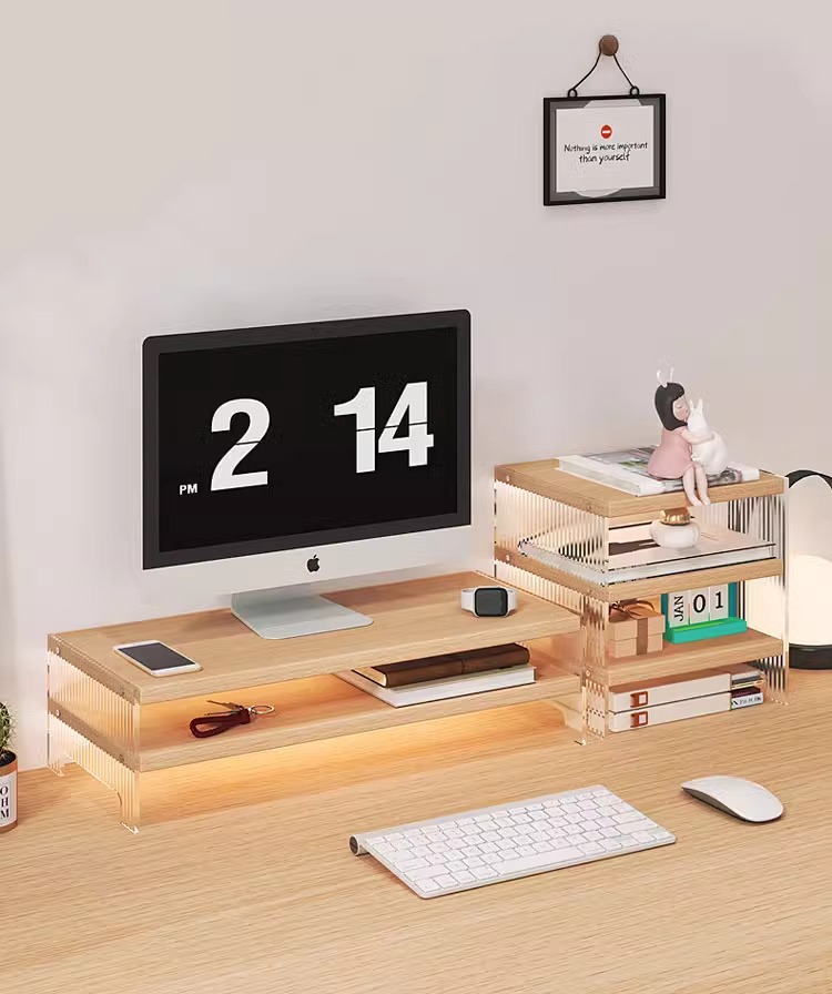 아크릴 컴퓨터 높은 랙 오피스 데스크탑 스토리지 컴퓨터 데스크 스토리지 랙 데스크톱 모니터 패드 높은 브래킷스토어 가기