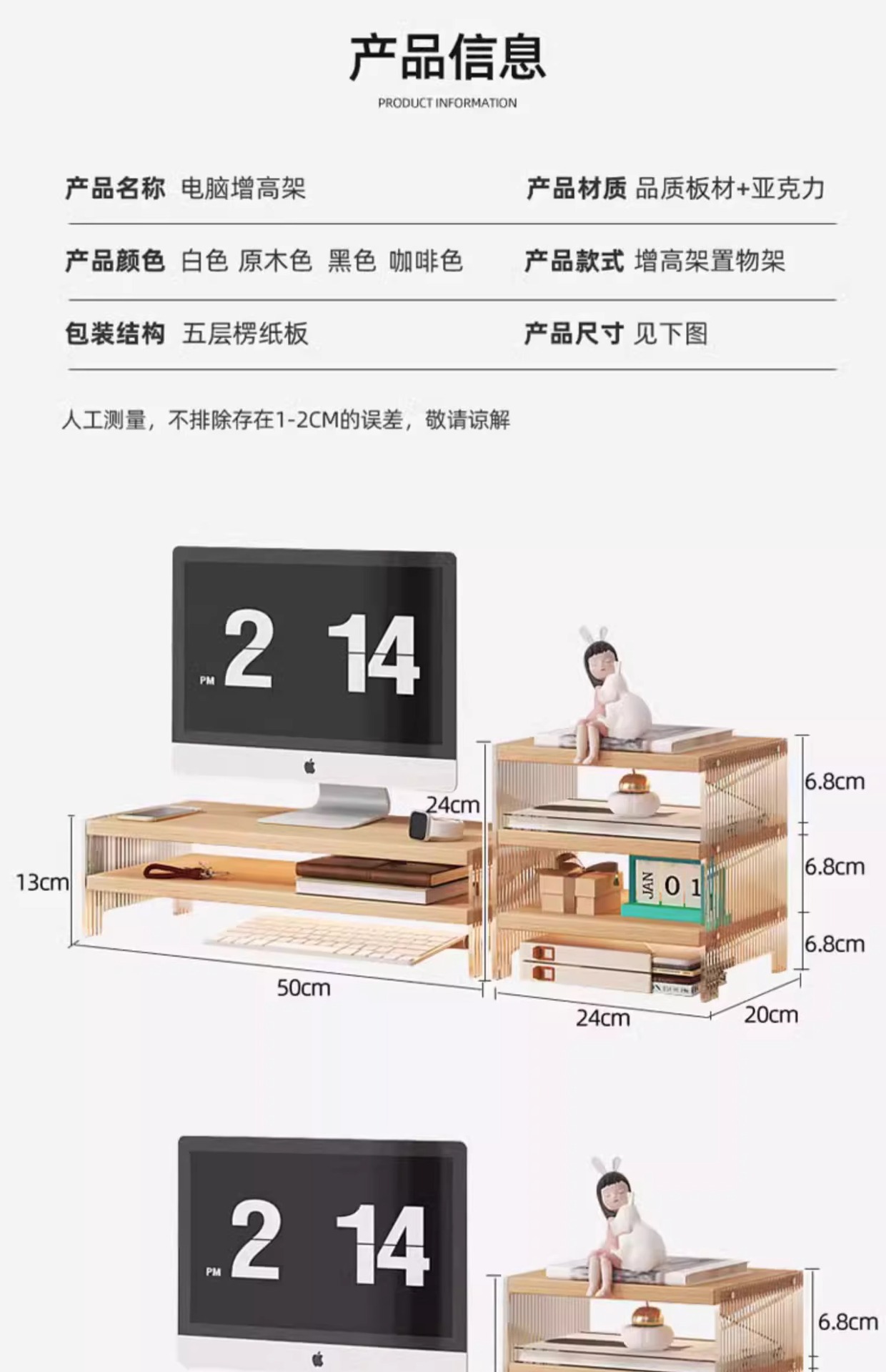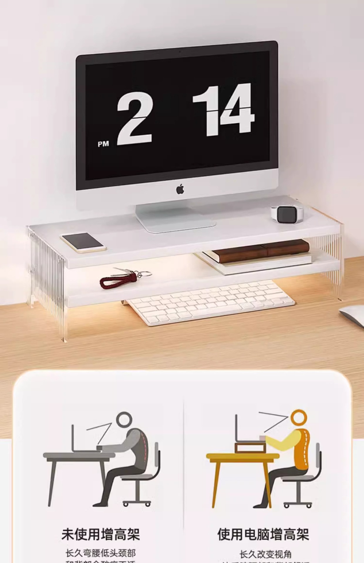 아크릴 컴퓨터 높은 랙 오피스 데스크탑 스토리지 컴퓨터 데스크 스토리지 랙 데스크톱 모니터 패드 높은 브래킷