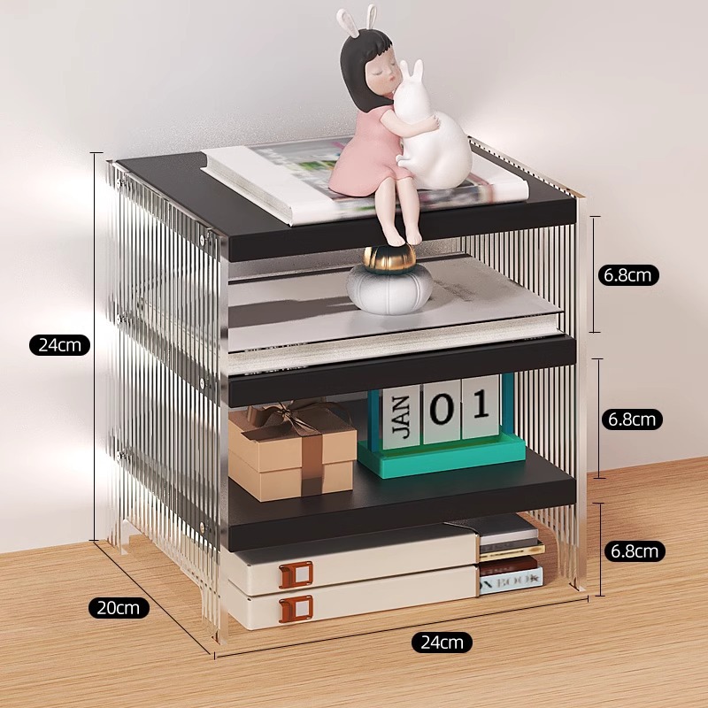 • [아크릴 서스펜션 조합] 단층 높이 랙 + 3단 수납 랙 - 블랙