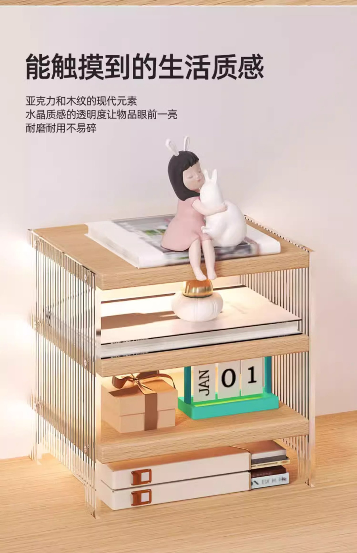 • [아크릴 서스펜션 모델] 3단 수납선반 - 우드 컬러
