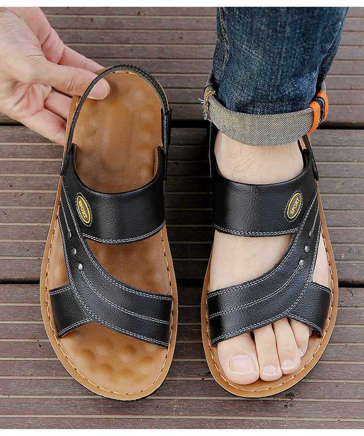 국경 간 여름 새로운 가죽 샌들 남성용 캐주얼 플러스 사이즈 비치 슈즈 46 미끄럼 방지 편리한 투웨어 샌들 45스토어 가기
