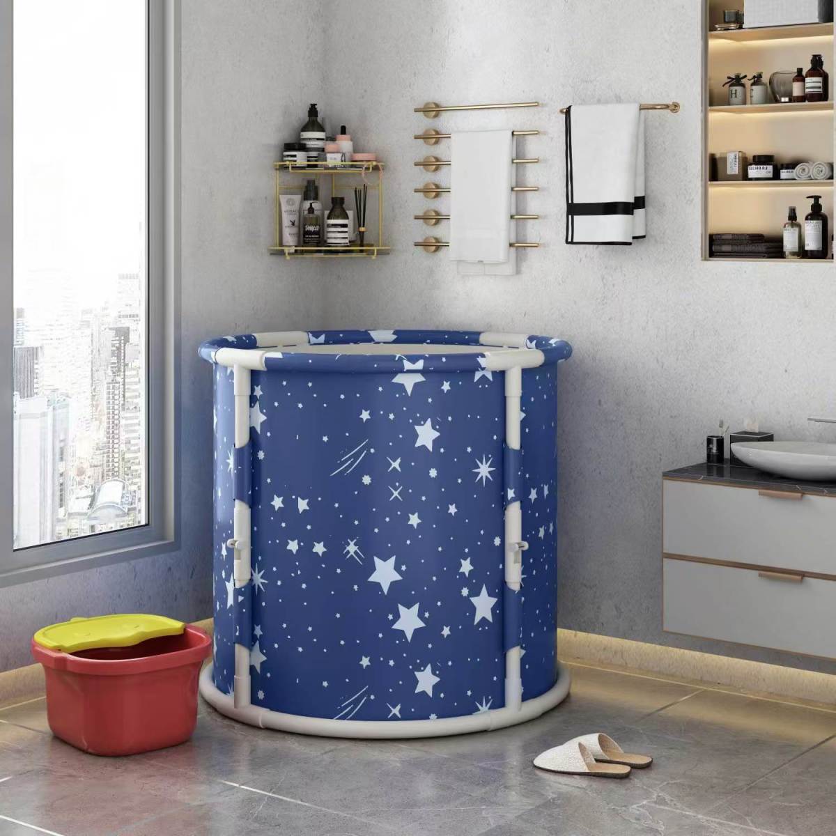 성인 새로운 내구성 아기 수영 버킷 절연 목욕 버킷 가정용 목욕 버킷 전신 두꺼운 접이식 대형 욕조스토어 가기